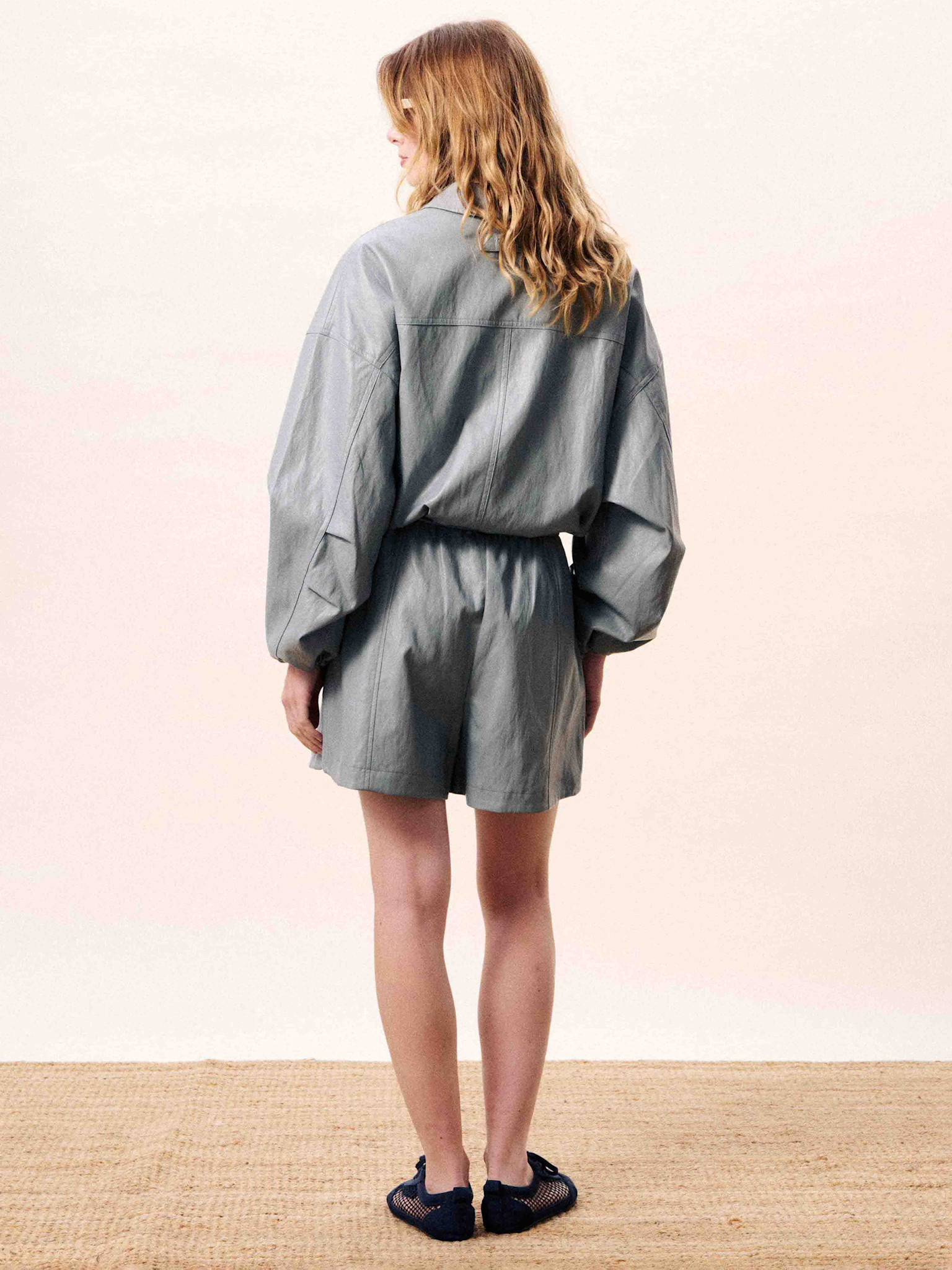 - 65% pu - 15% cotton - 10% viscose - 5% polyester - 5% metallic fiber