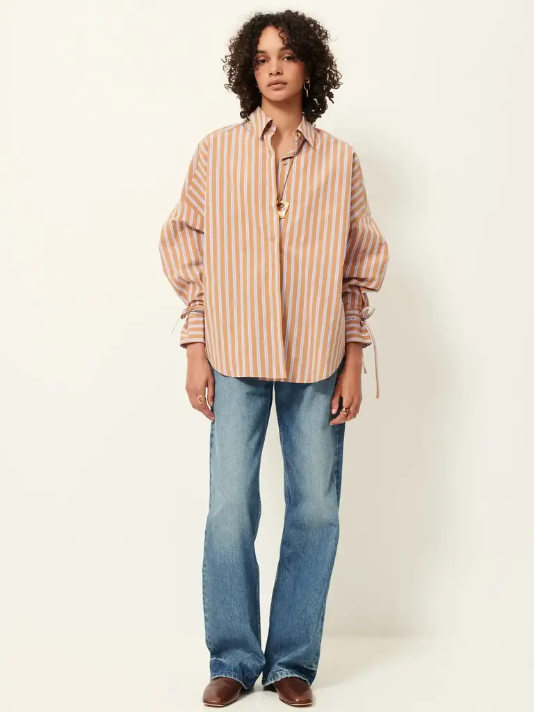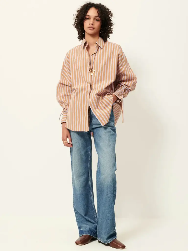 Loose-fitting shirt with low armholes in cotton poplin with exclusive Sessùn stripes, woven in Italy.