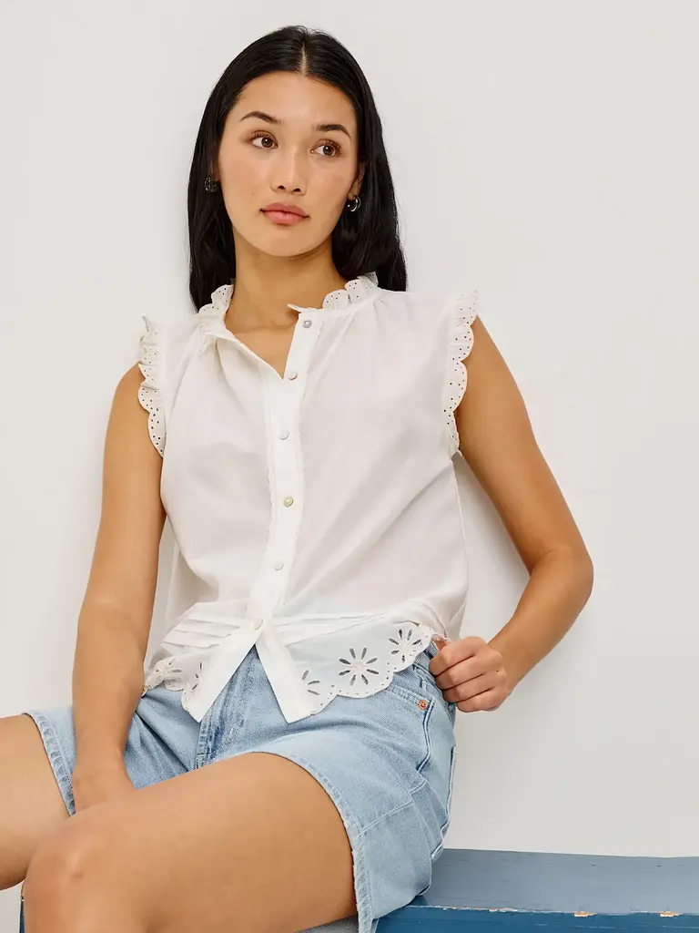White blouse with embroidered detailing by Rails.