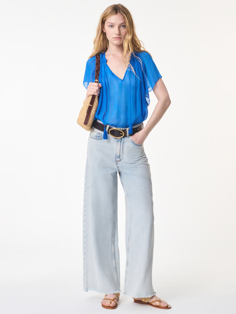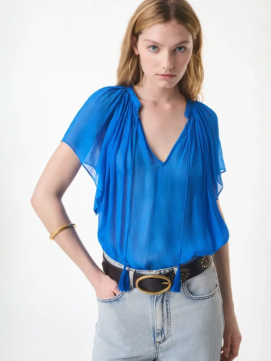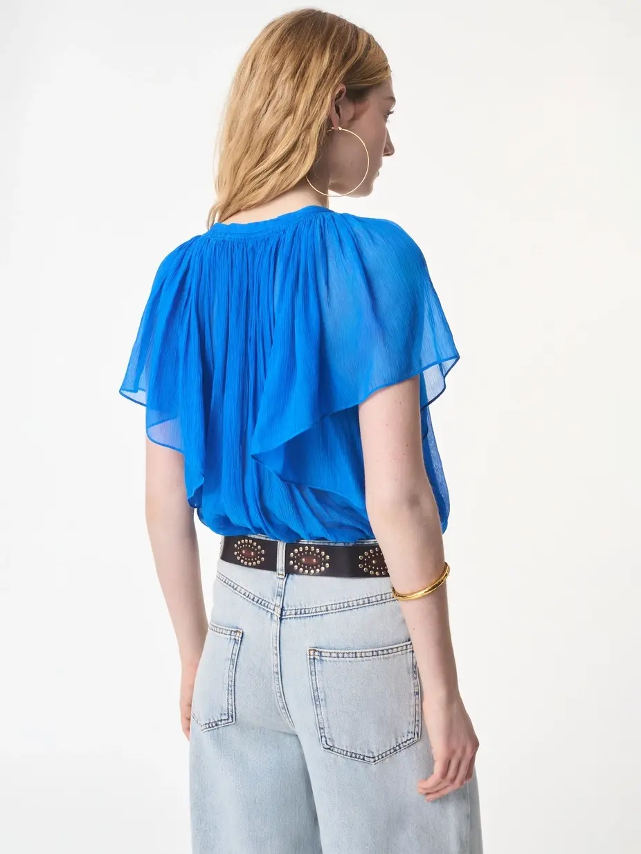 Bright blue ruffled blouse by Vanessa Bruno.