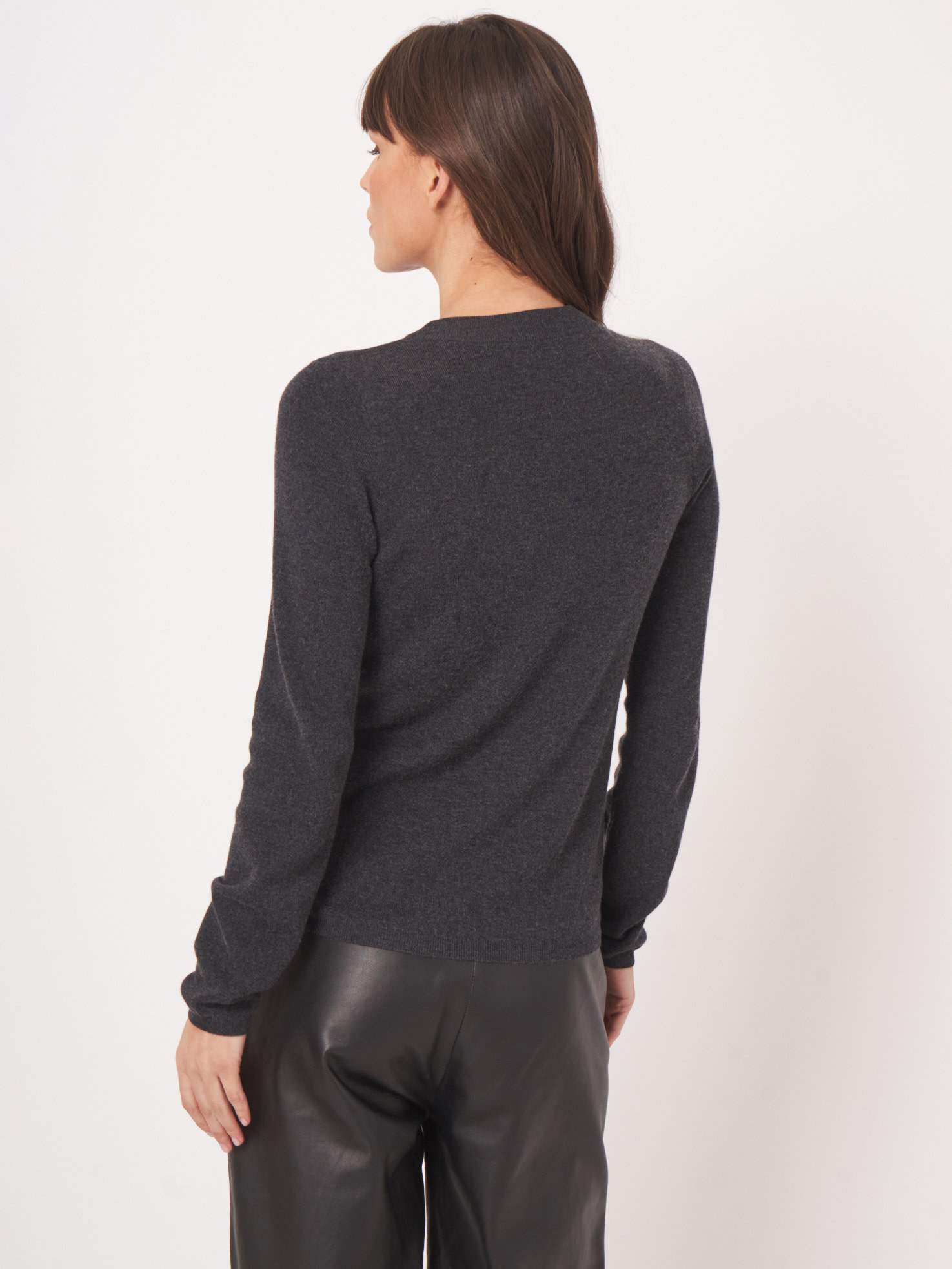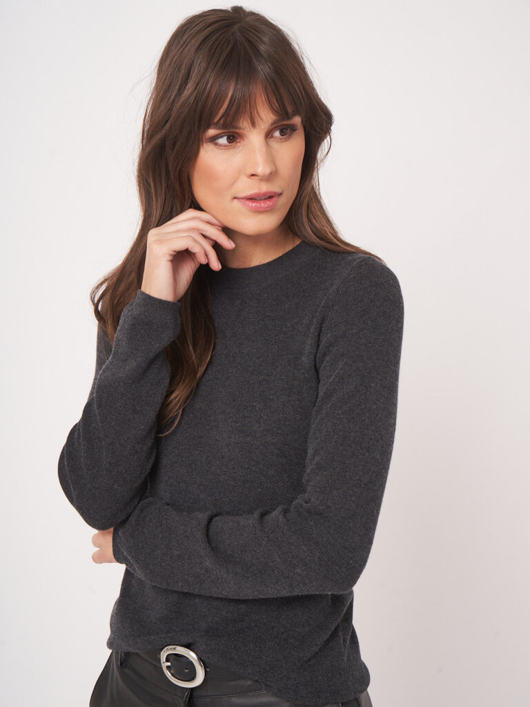 The 401108 sweater from REPEAT is a real favorite when it comes to softness and elegance. Its long sleeves and more fitted cut keep us cozy on cooler days. It pairs well with either a skirt for a dressier occasion or jeans for a casual look.