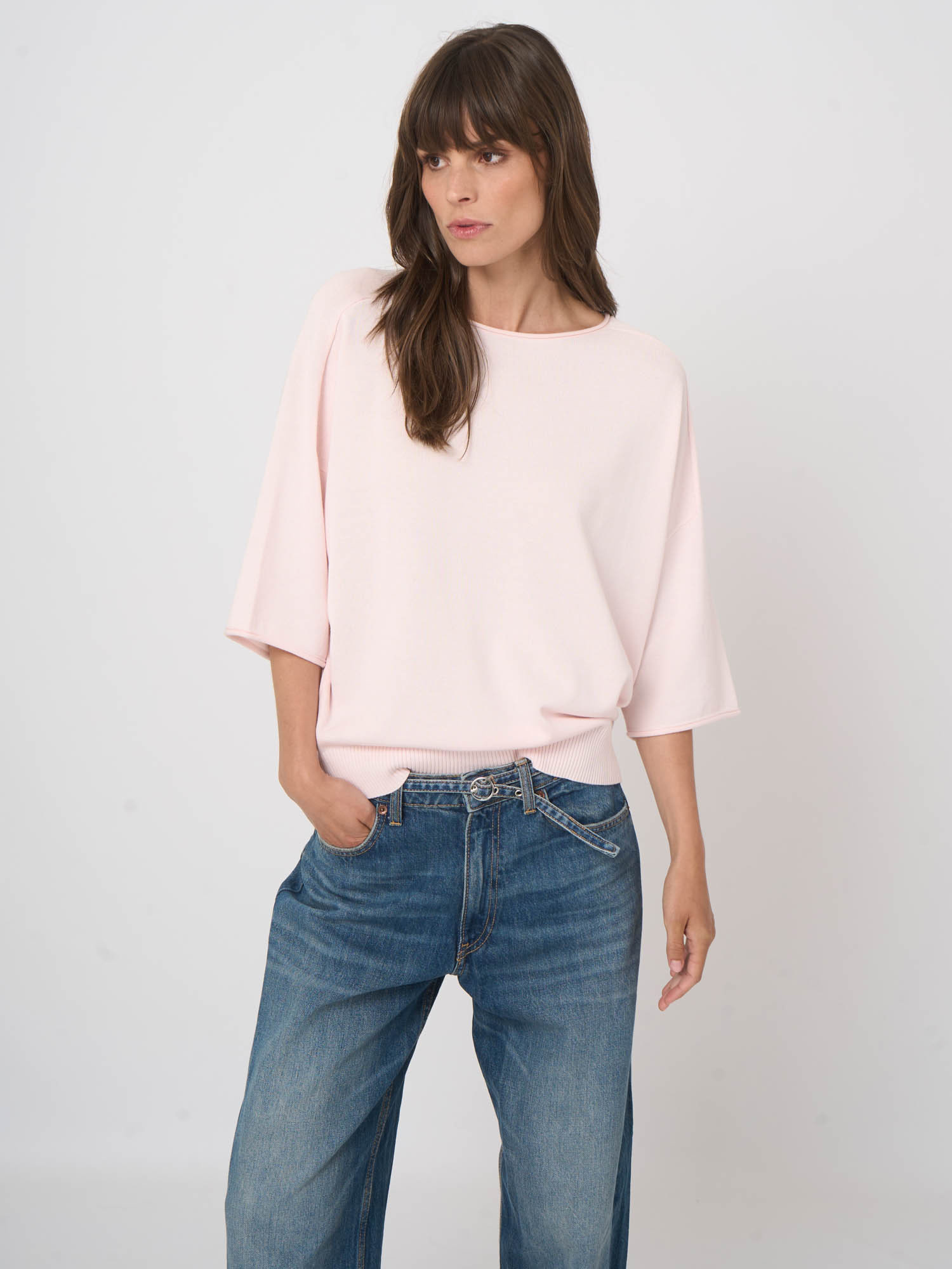 Lightweight pale pink cotton knitwear by Repeat.