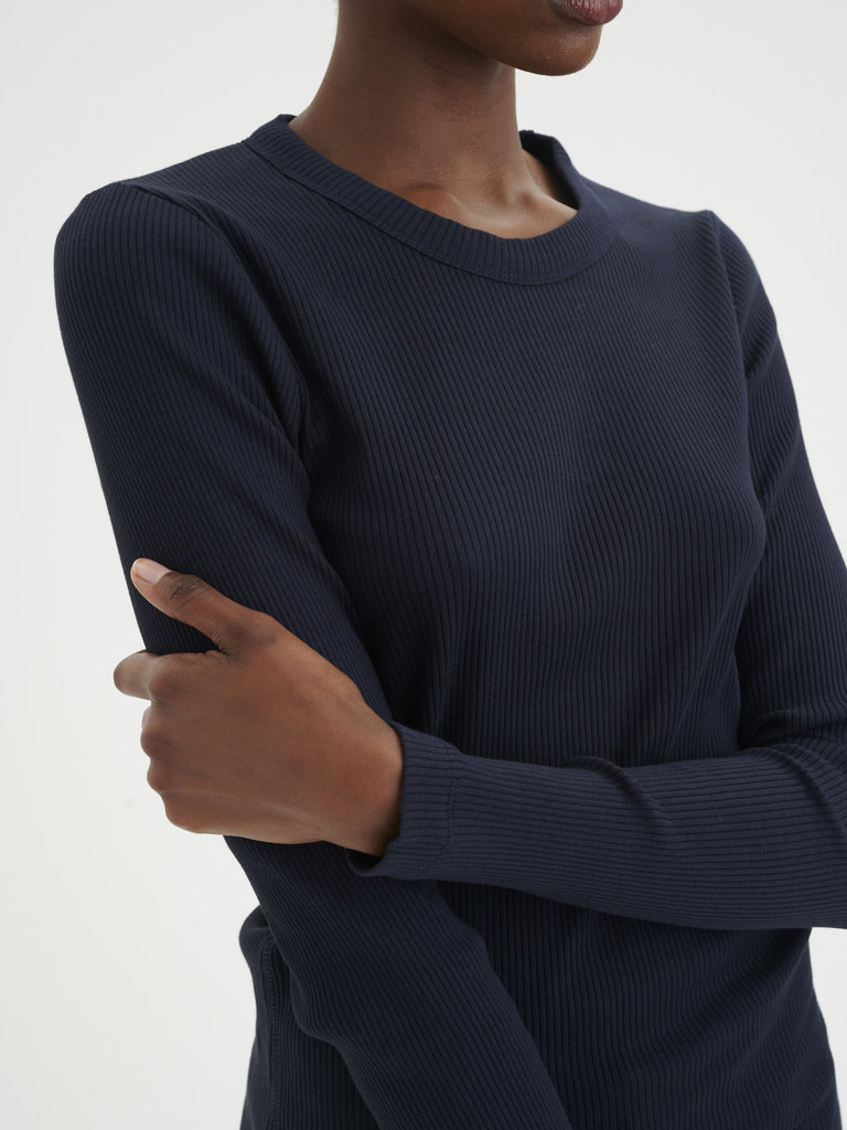 This stretchy rib tee can be worn as a basic with all your favorite outfits. It's also ideal under a jacket or cardigan.