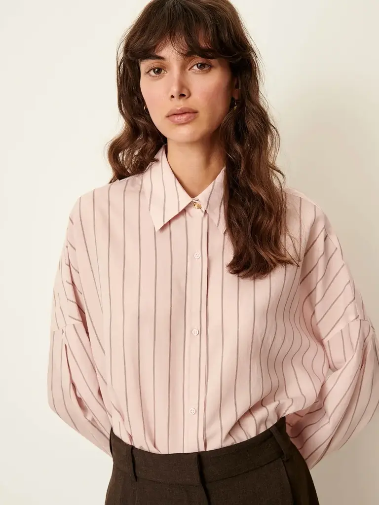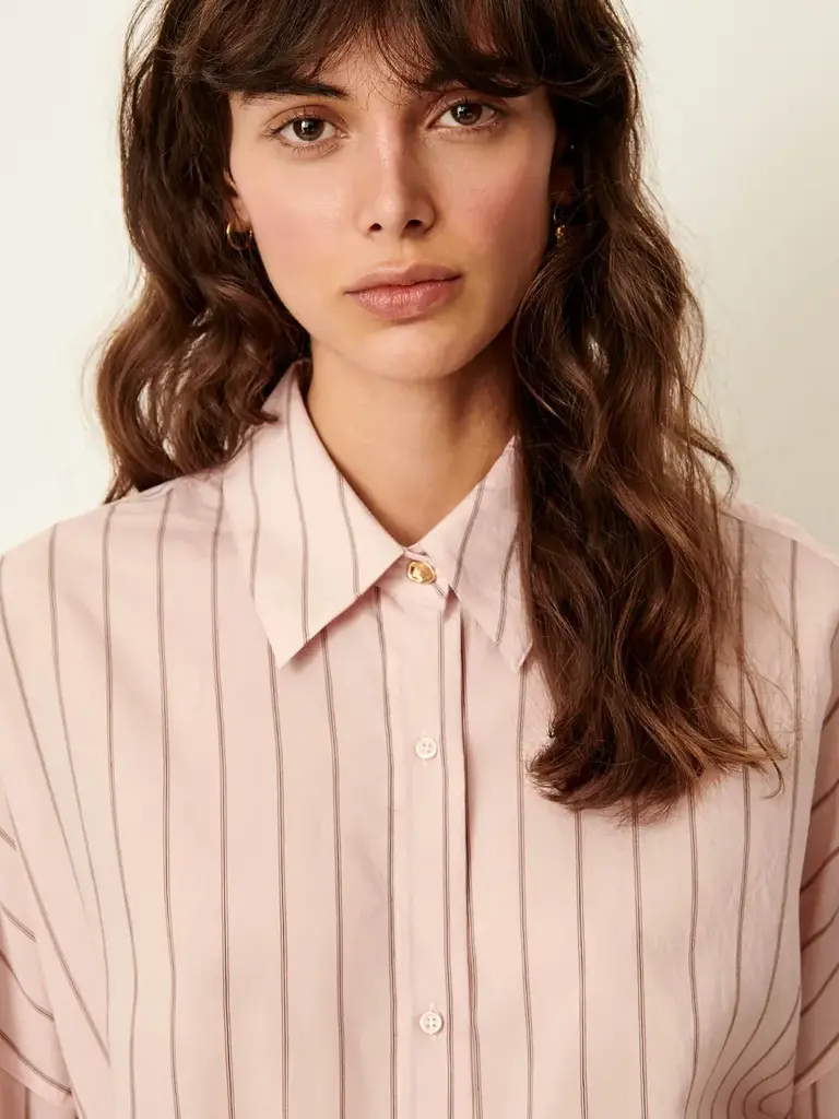Light pink shirt with thin vertical stripes by Sessùn.