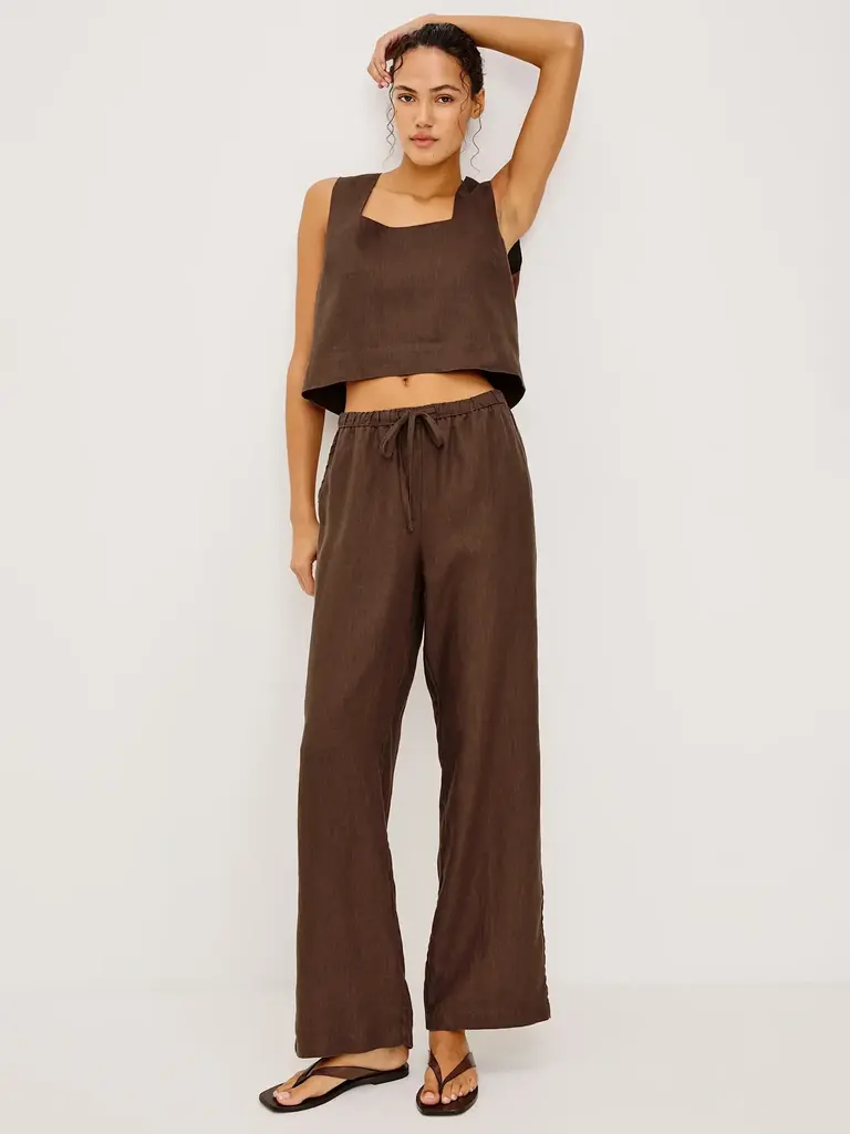 Espresso-colored linen pants by Rails.