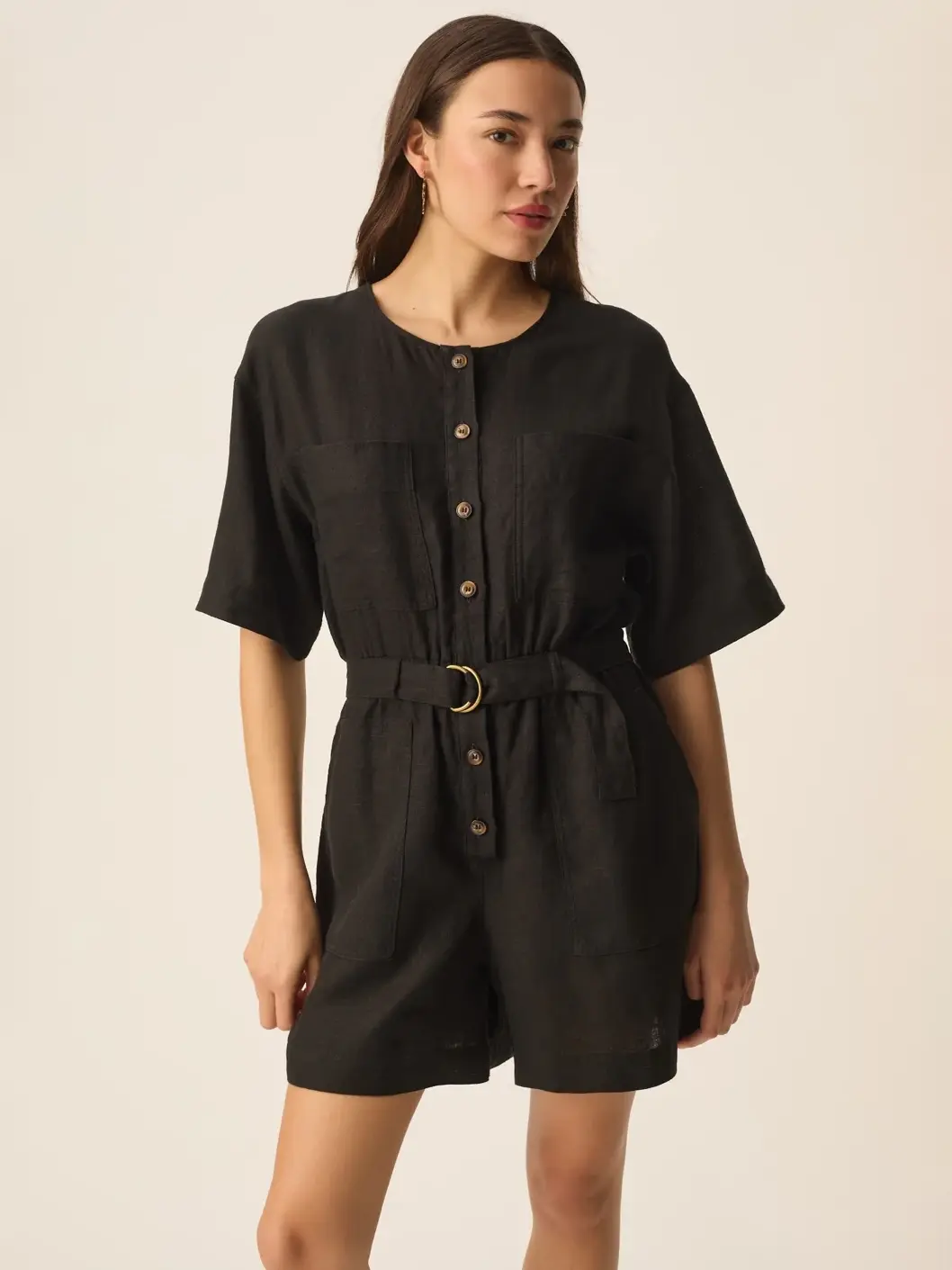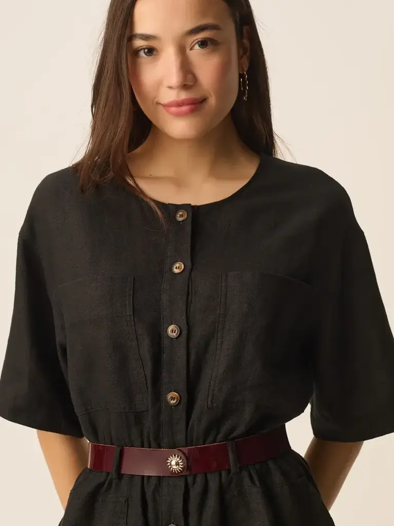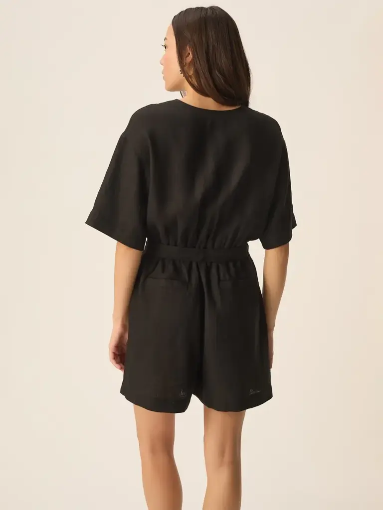 Combinaison-short en lin noir de la marque Des Petits hauts.