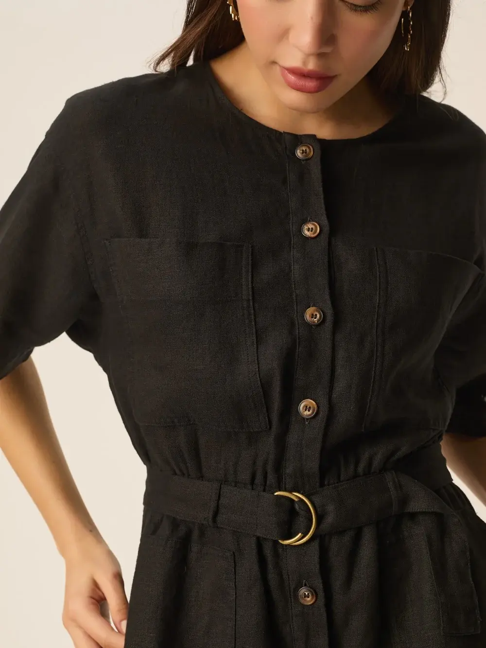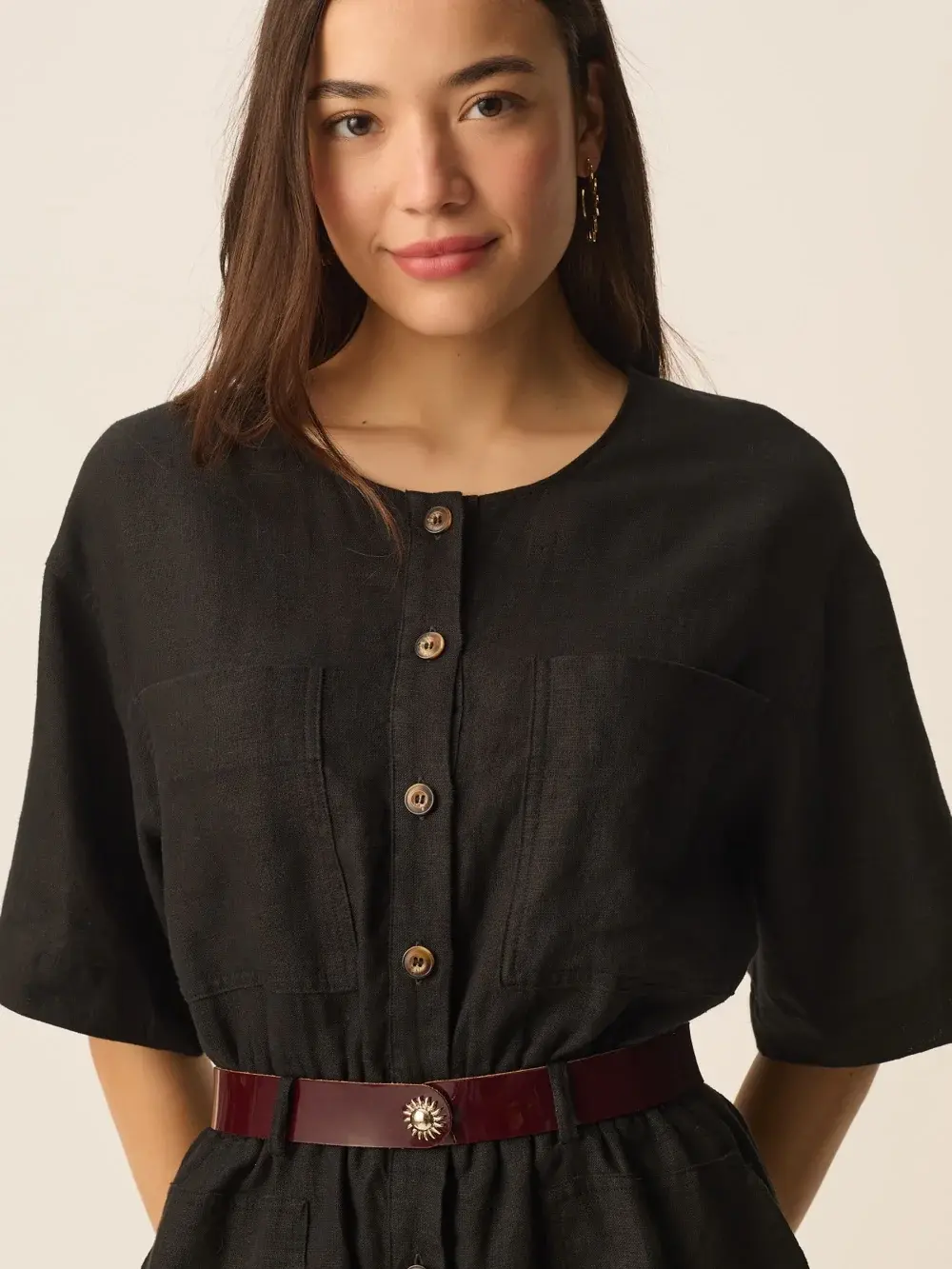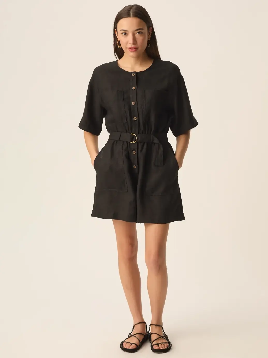 Combinaison-short en lin noir de la marque Des Petits hauts.
