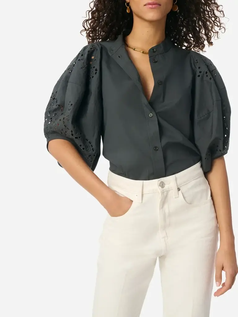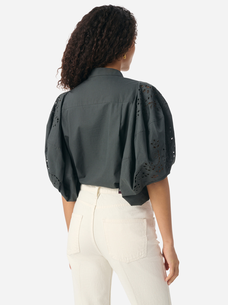 Charcoal blouse with embroidered details by Vanessa Bruno.