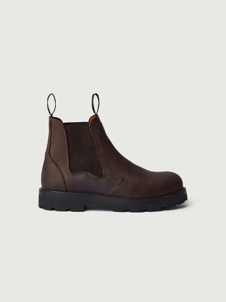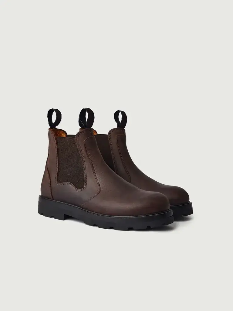 Dark brown oiled cowhide leather ankle boots by Soeur.