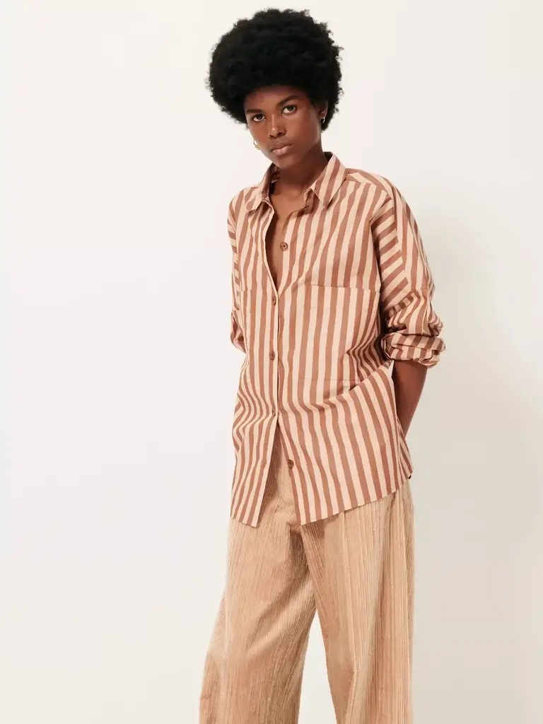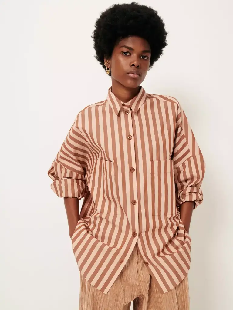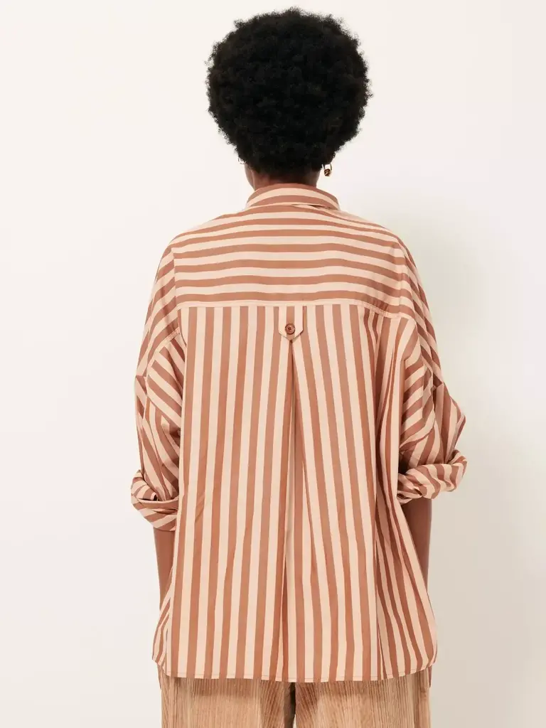The Fontania shirt by Sessùn is a loose-fitting, long-sleeved style. The shirt also features patch pockets and is made from compact cotton poplin. Its two-tone striped pattern gives it an irresistible charm while remaining modern.