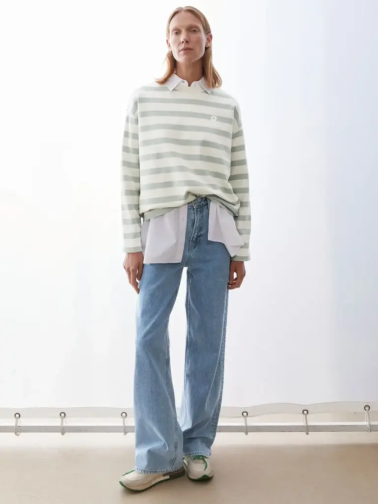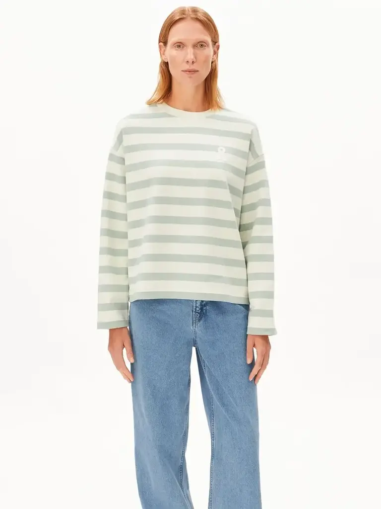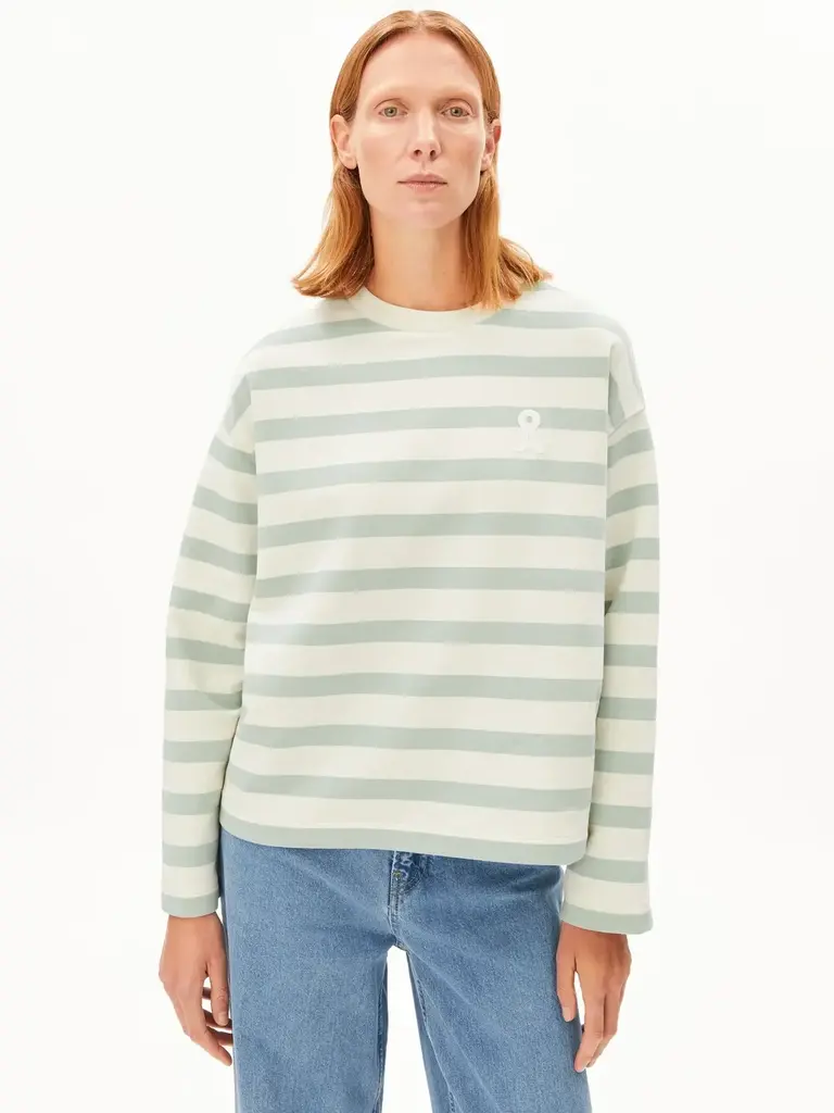 Cream and pale green striped sweatshirt by Armed Angels.
