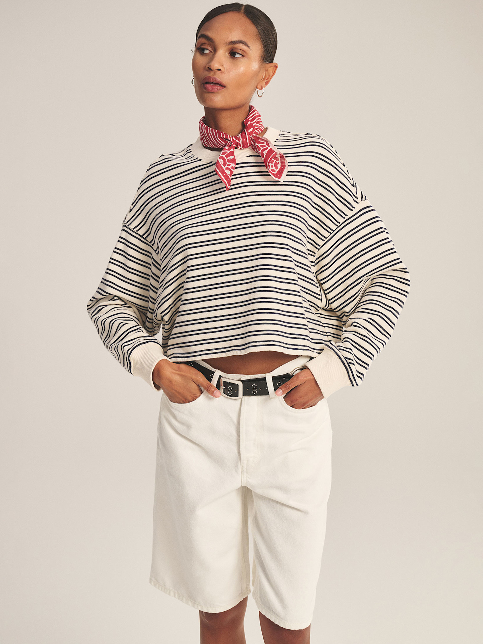 Short striped sweatshirt by Velvet.