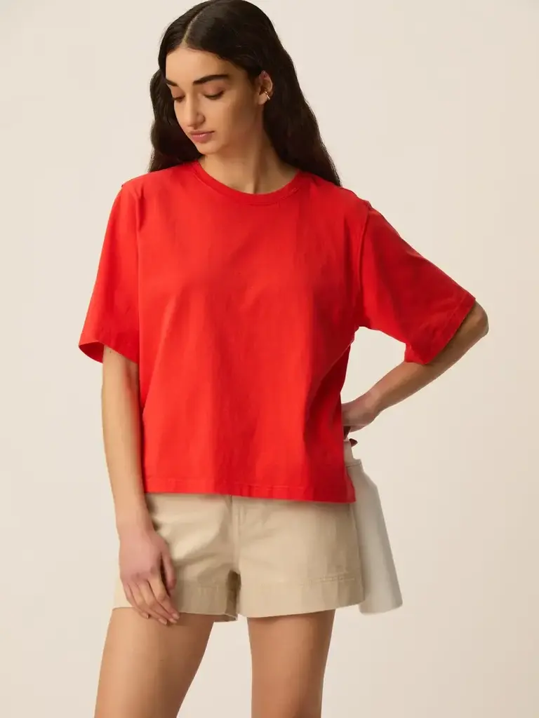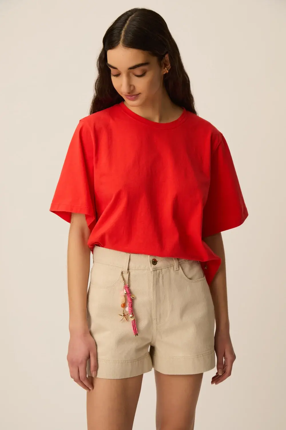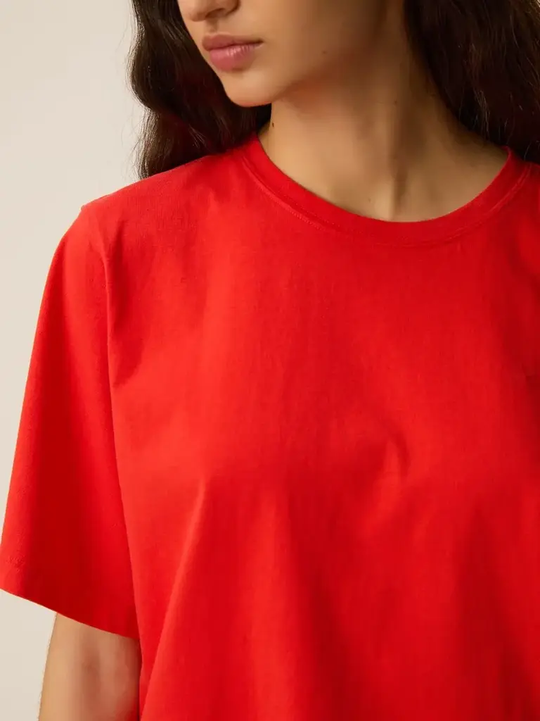 With its boxy cut, wide sleeves, and soft feel, the Jerry oversized plain cotton T-shirt has a relaxed, urban vibe. Wear it loose over jeans or tucked into a more structured silhouette—it's a spring-summer essential that's easy to incorporate into your everyday looks.