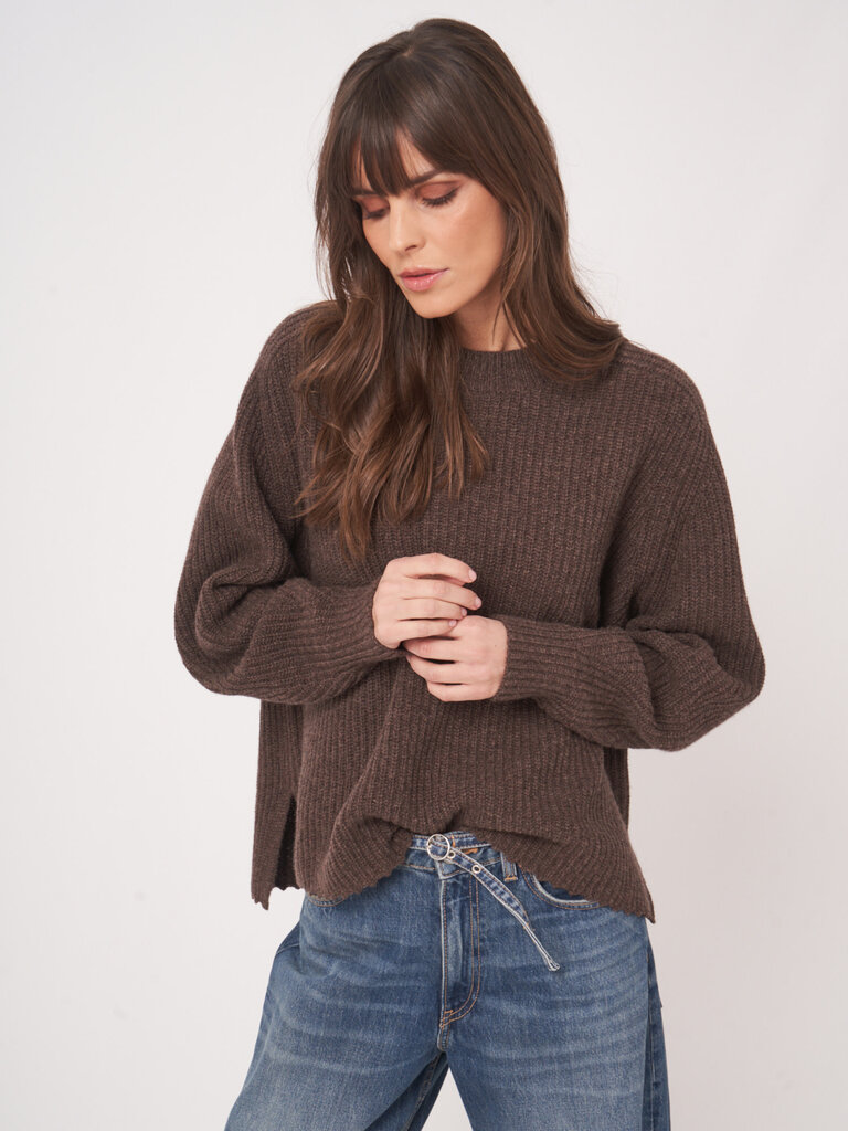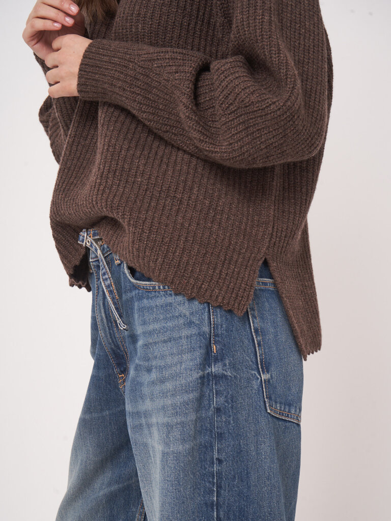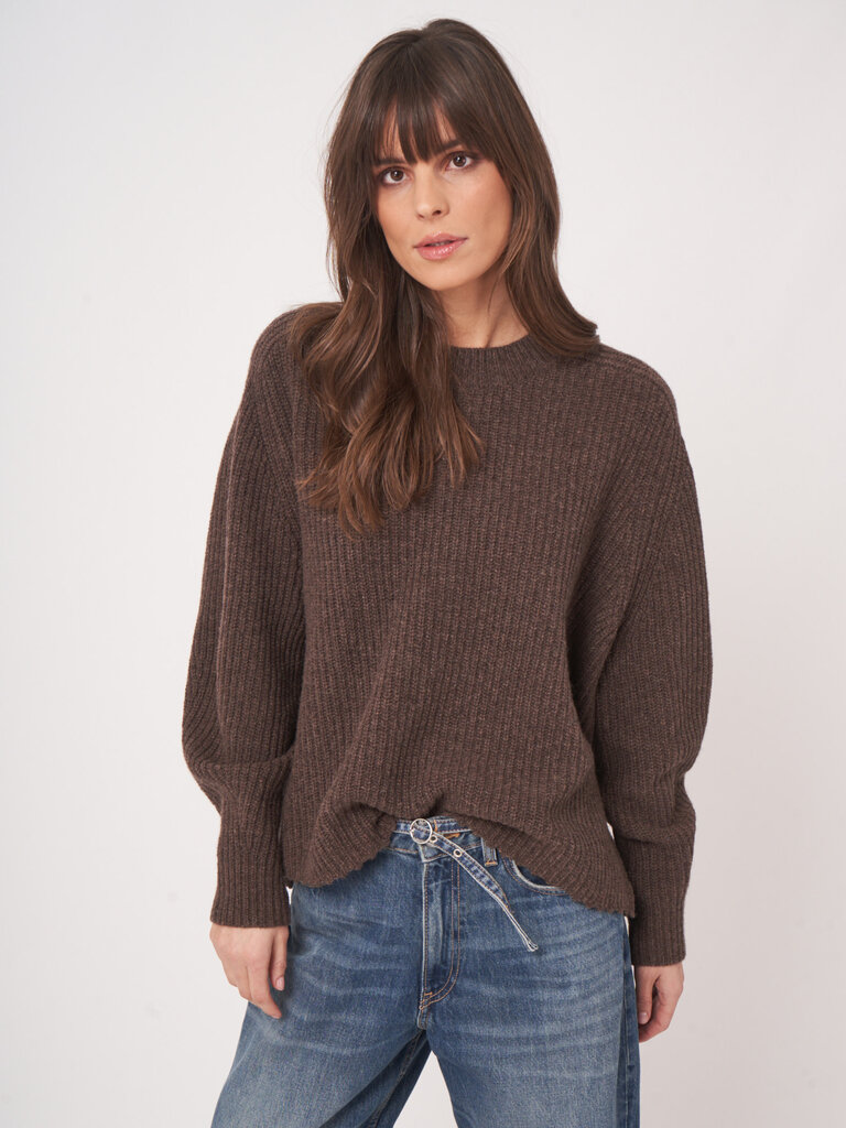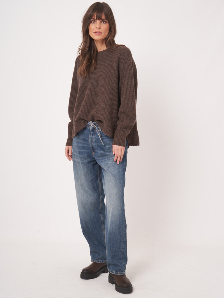 Brown ribbed sweater by Repeat.