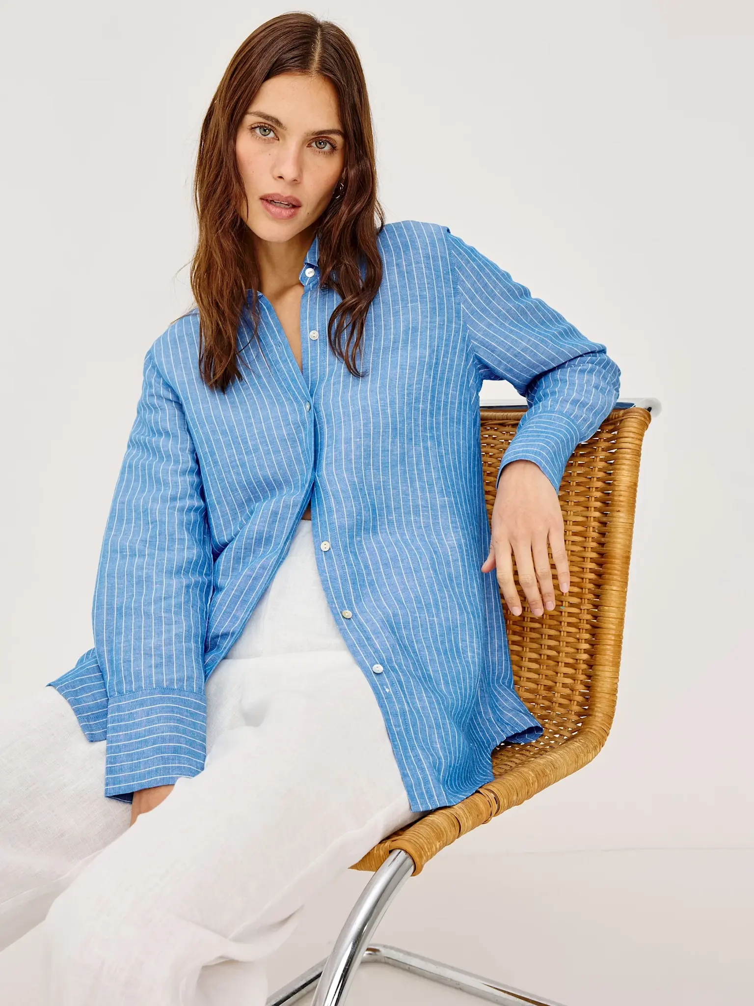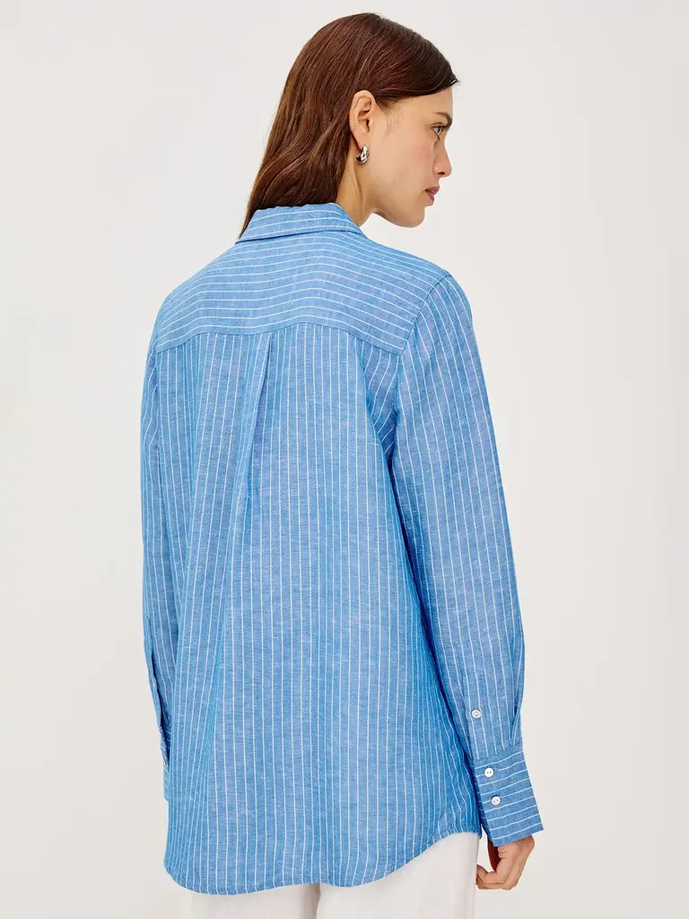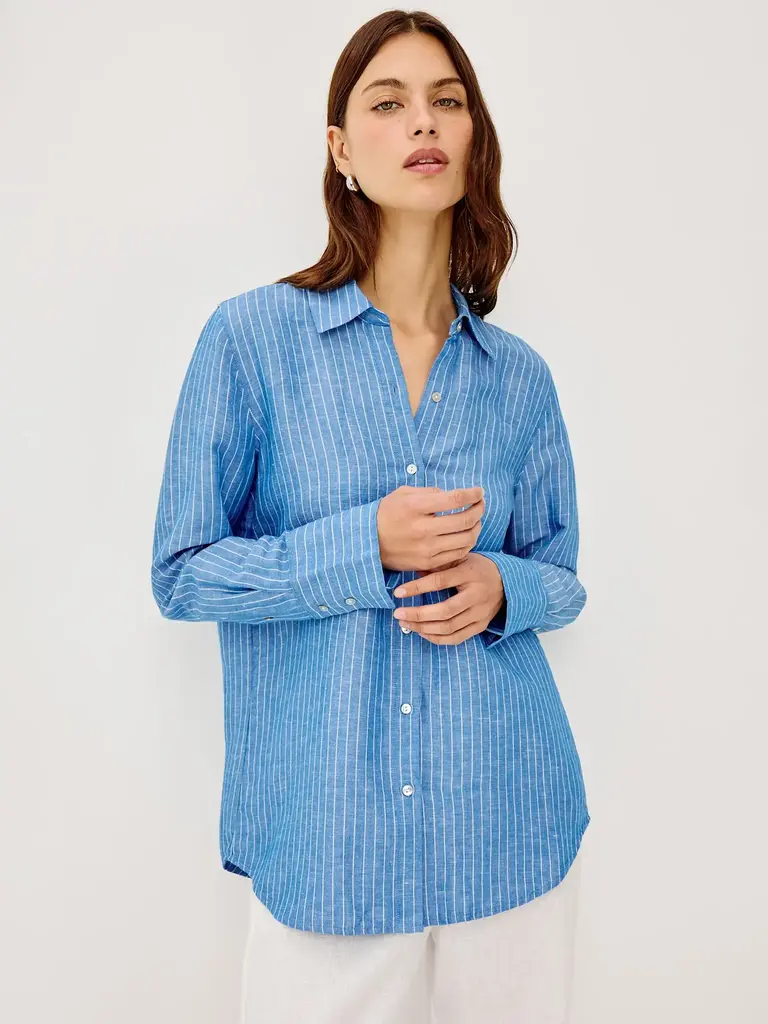 Blue shirt with thin vertical stripes by Rails.
