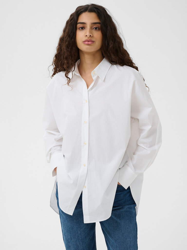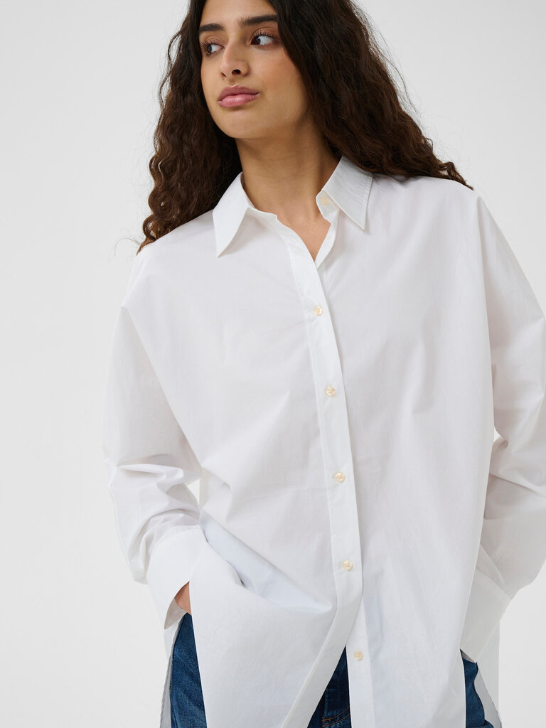 Basic long and loose-fitting shirt in white poplin by InWear.