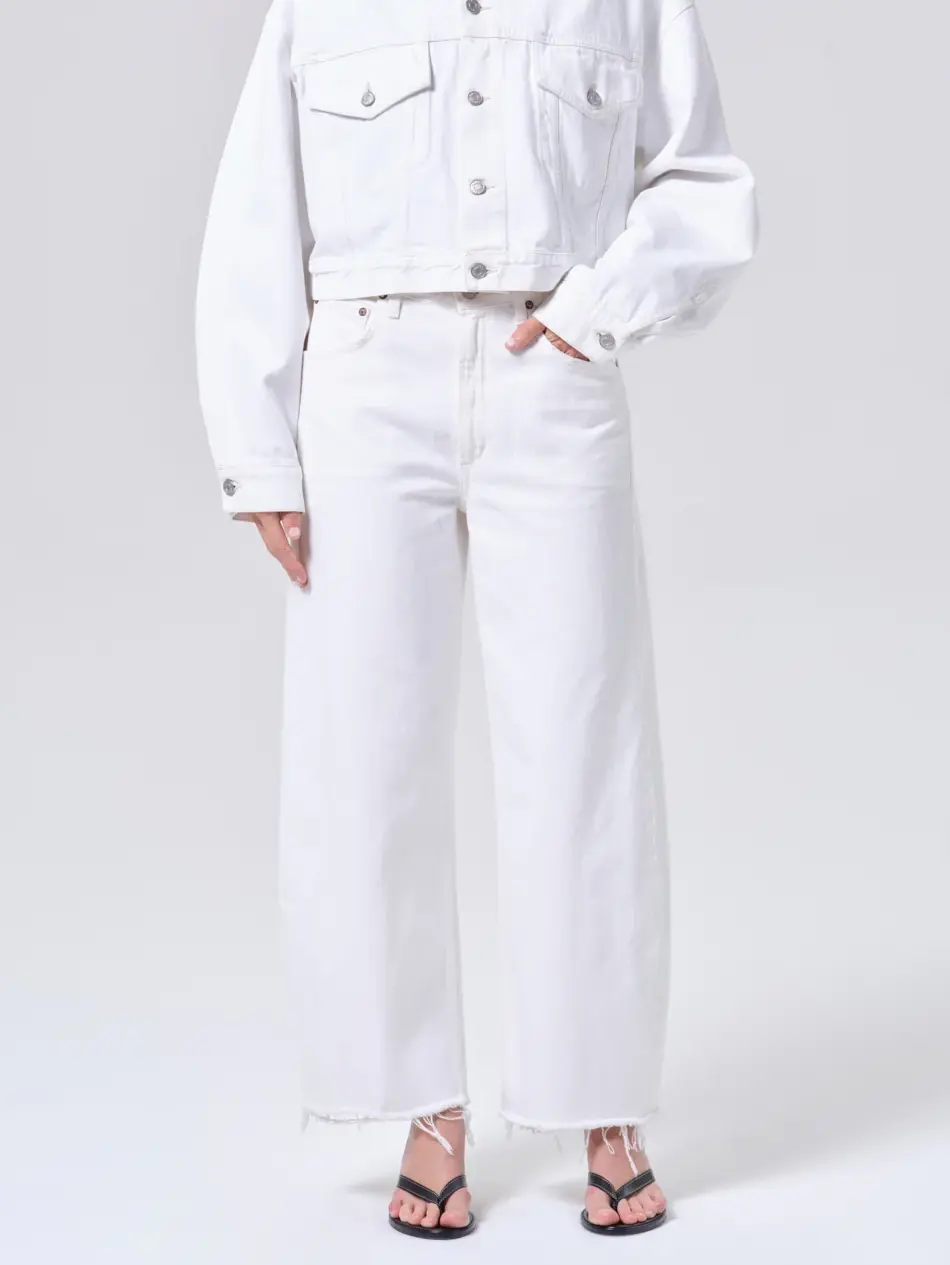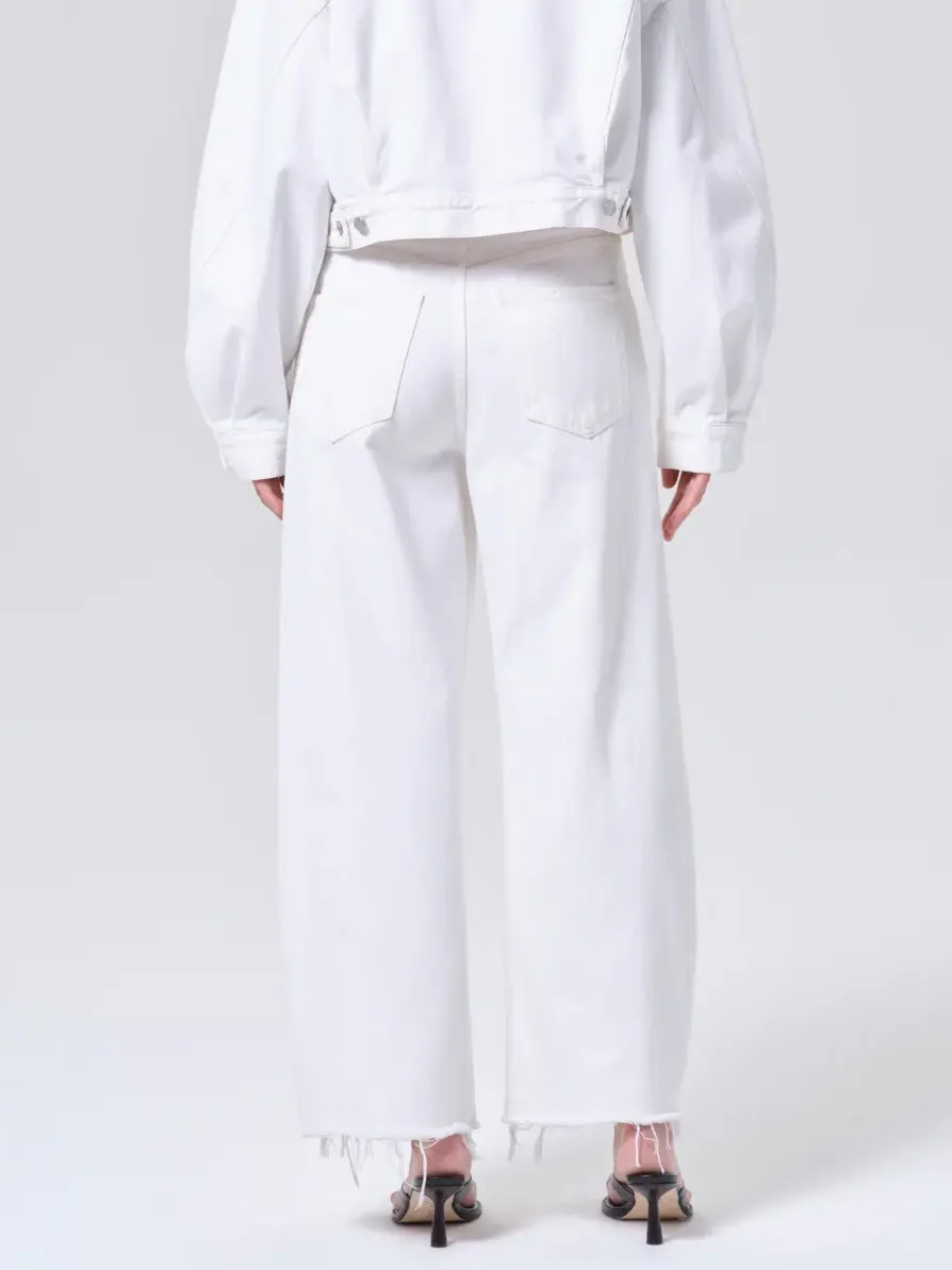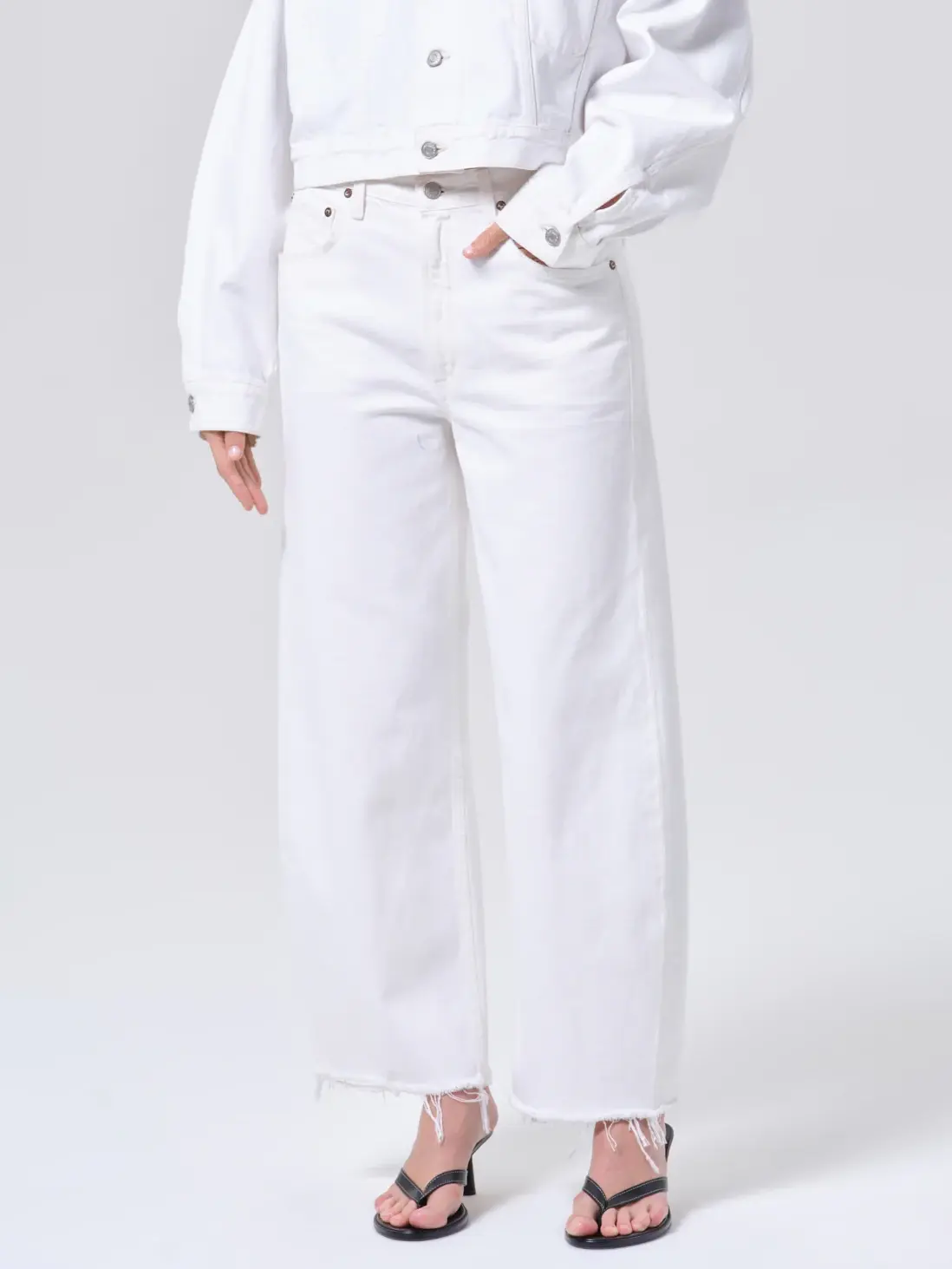 The Low Curve Fray is Crafted from regenerative cotton in clean white denim, the frayed hem adds a relaxed touch, perfect for warm-weather styling. Pair with a simple tank and sneakers for a laid-back look or dress it up with a tucked-in blouse and heels for a more polished ensemble.