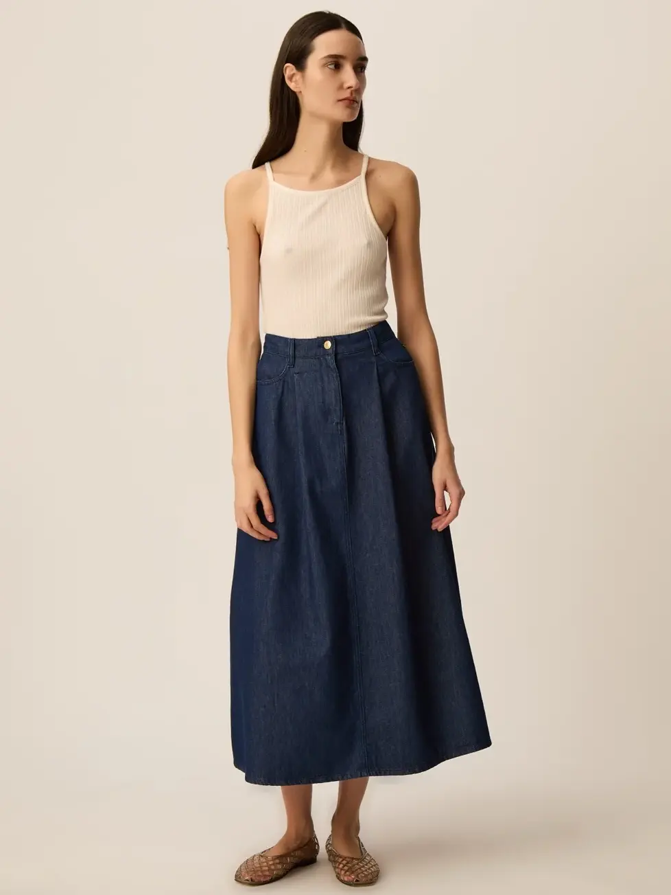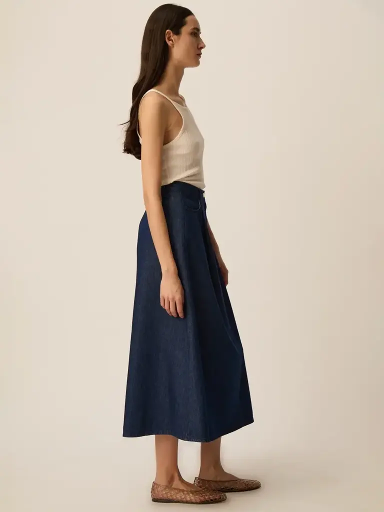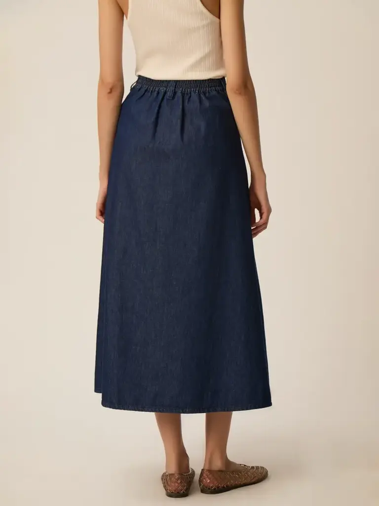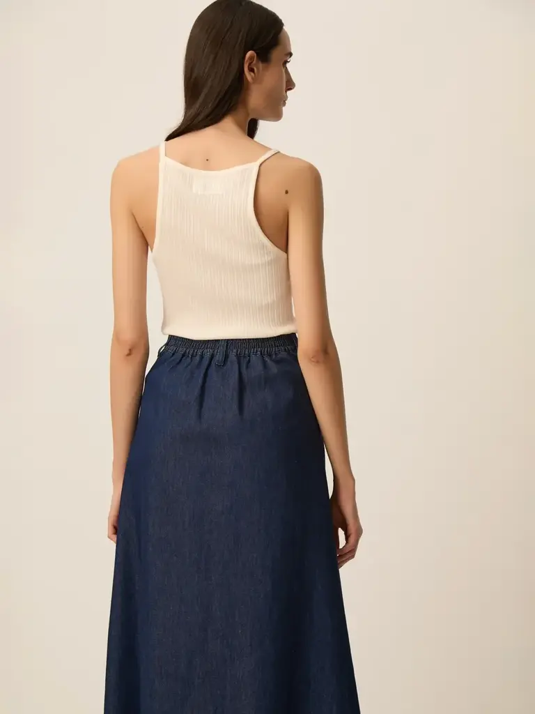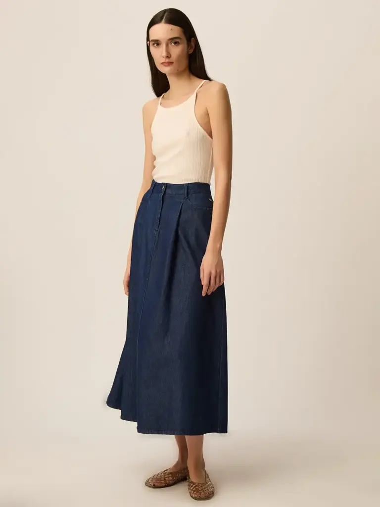 • Mid-length skirt in 100% cotton denim