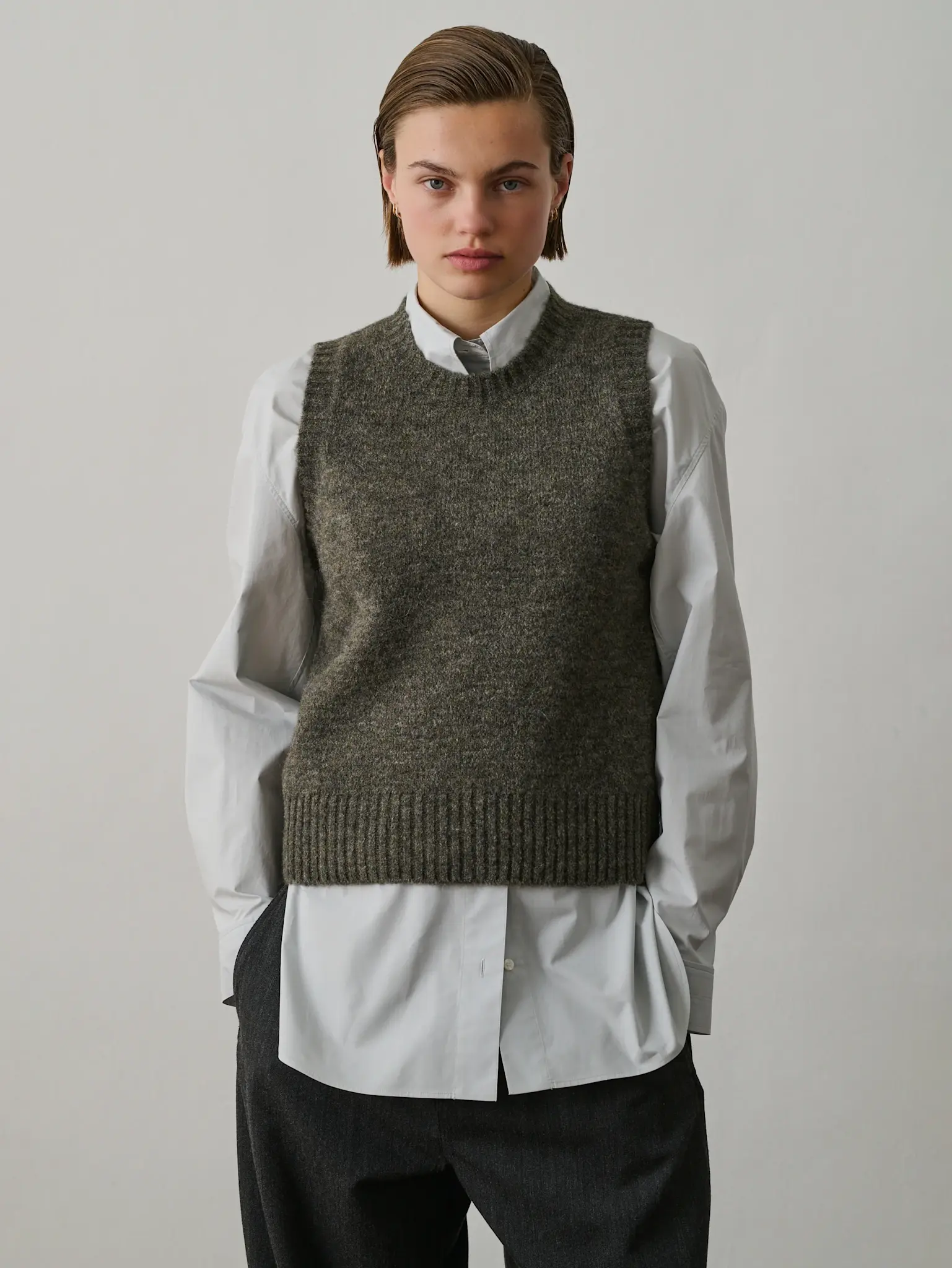Heather grey - green knit vest by Soeur.