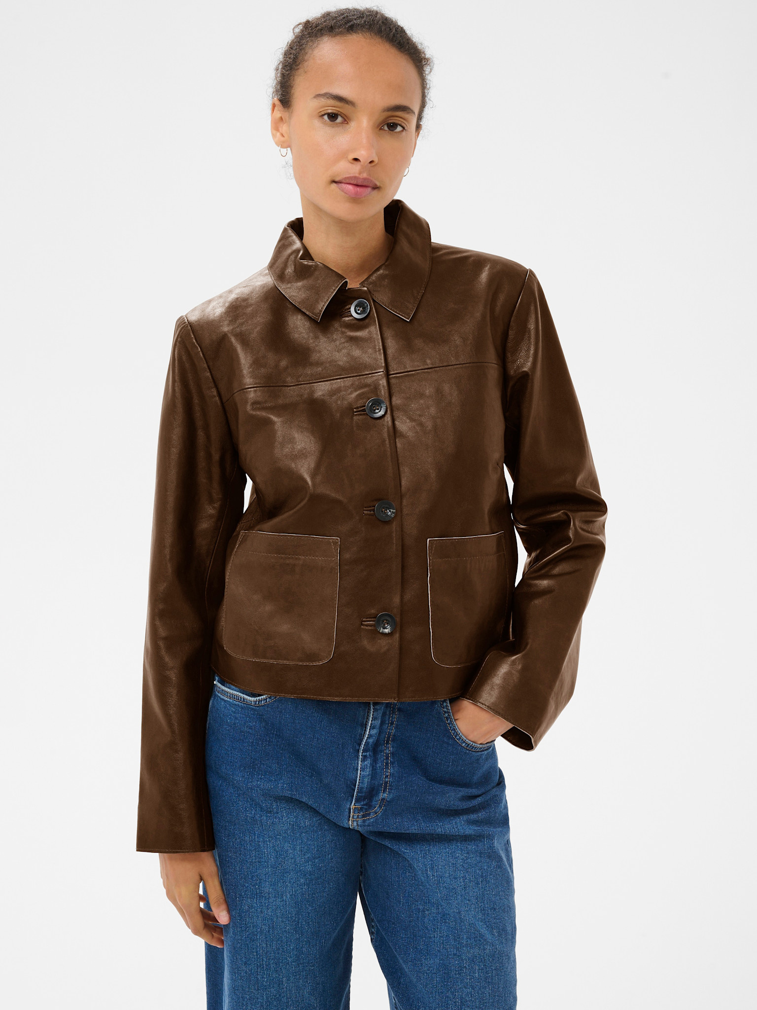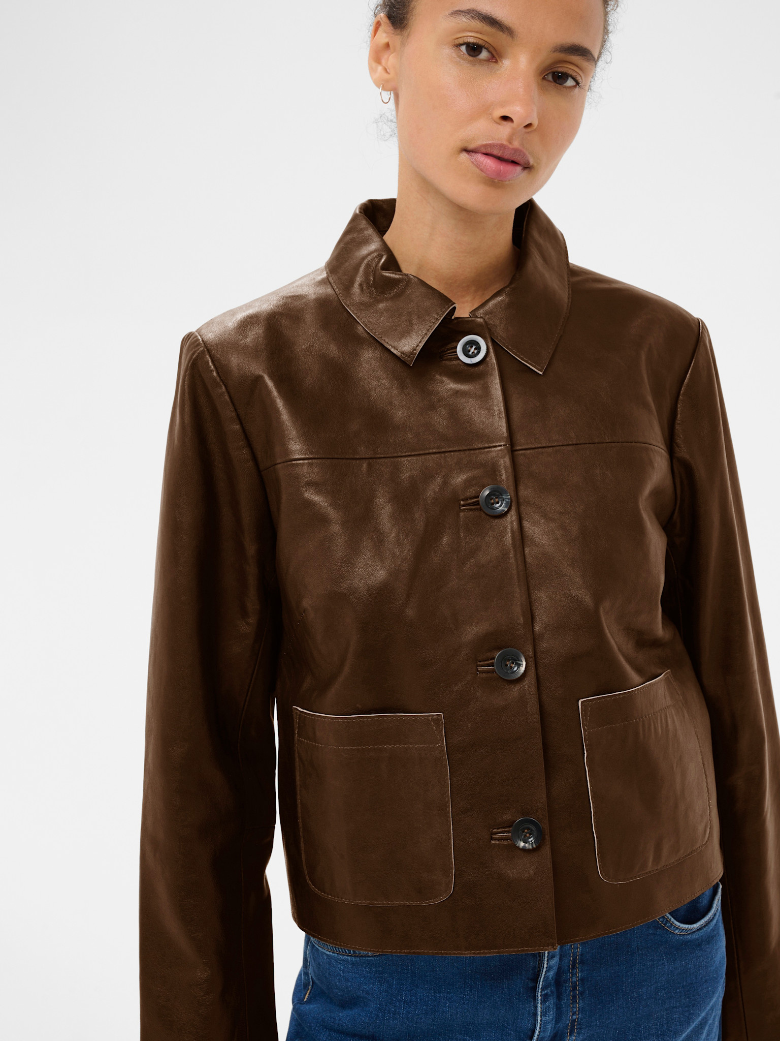 Brown leather coat by Part Two.