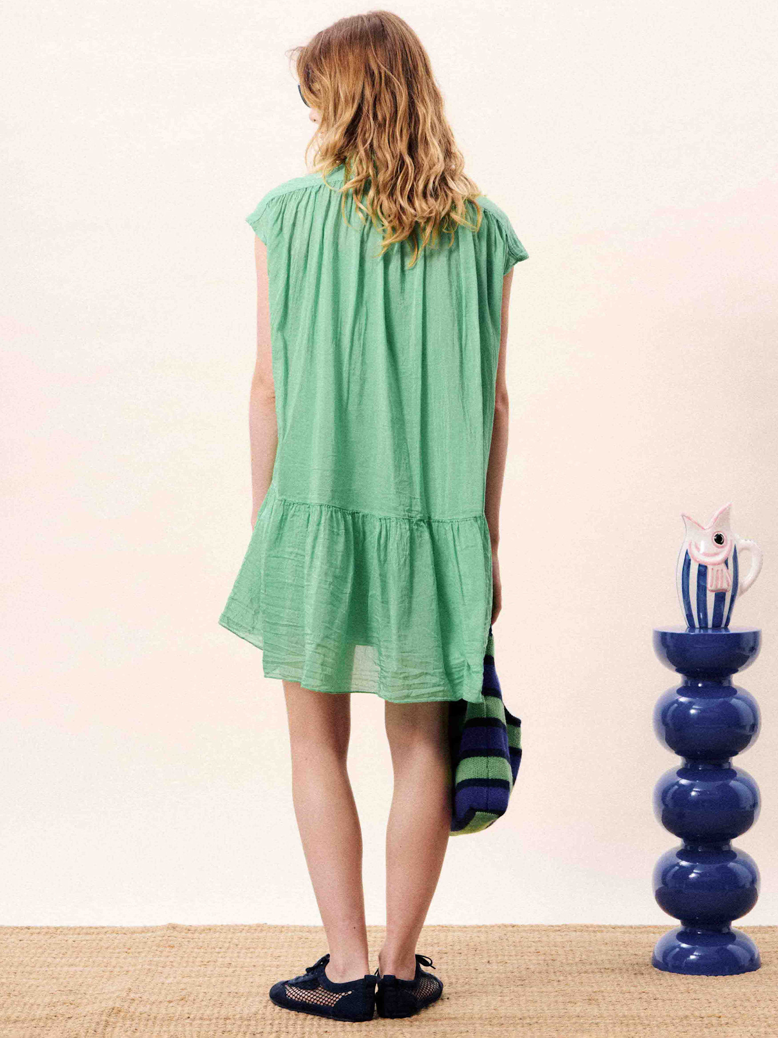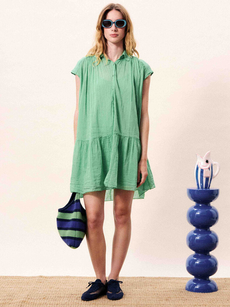 Short, flowing green dress by Frnch.