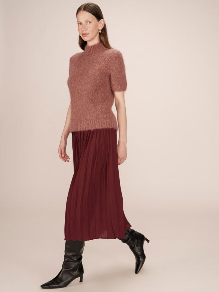 The pleated midi skirt by Grace & Mila is a timeless piece that combines elegance and comfort with its fully elasticated waistband. The straight cut and mid-rise waist make this skirt a model that suits all body types. The delicate pleats add movement and a sophisticated look, making the pleated straight skirt a distinctly feminine piece.