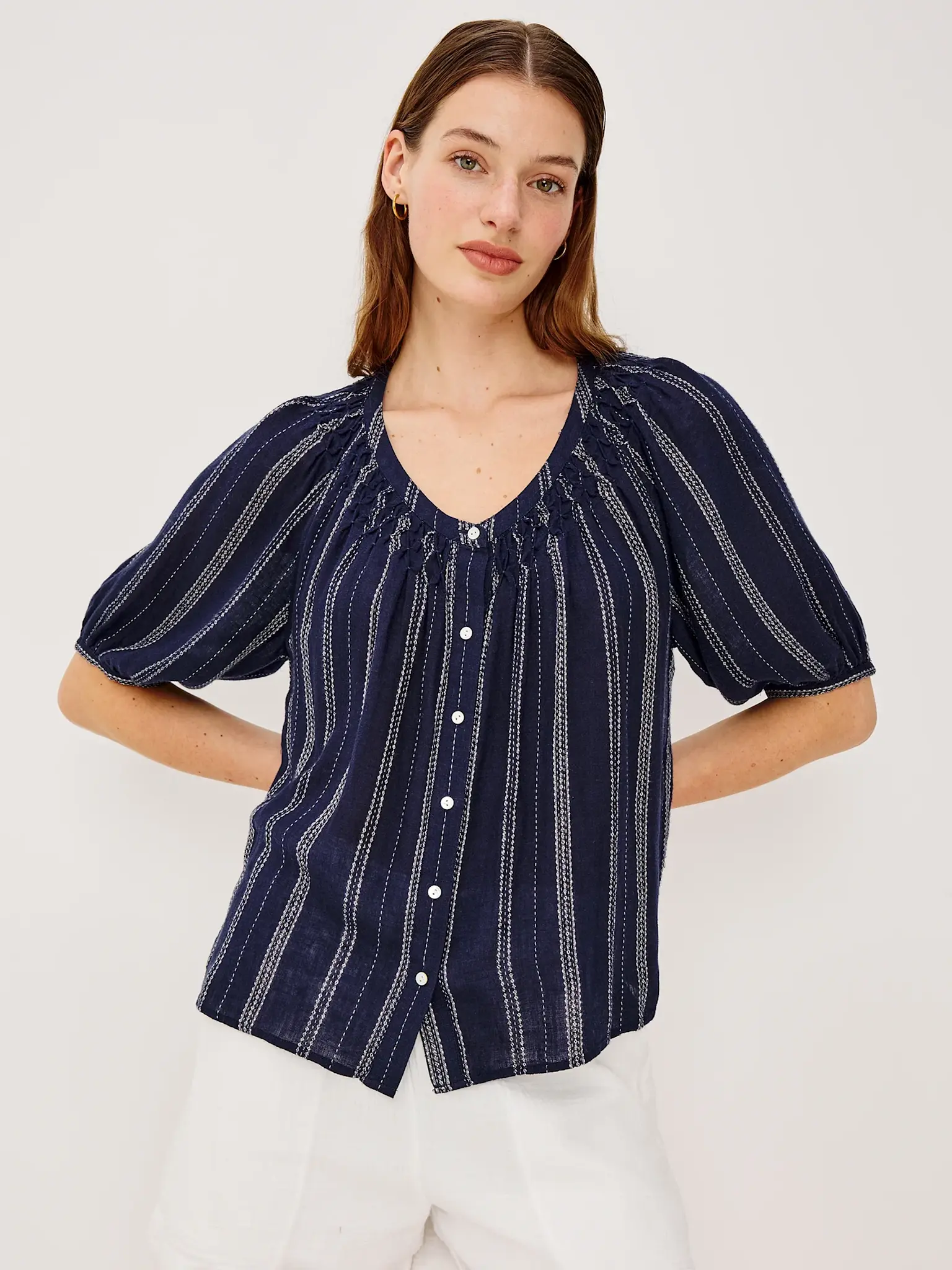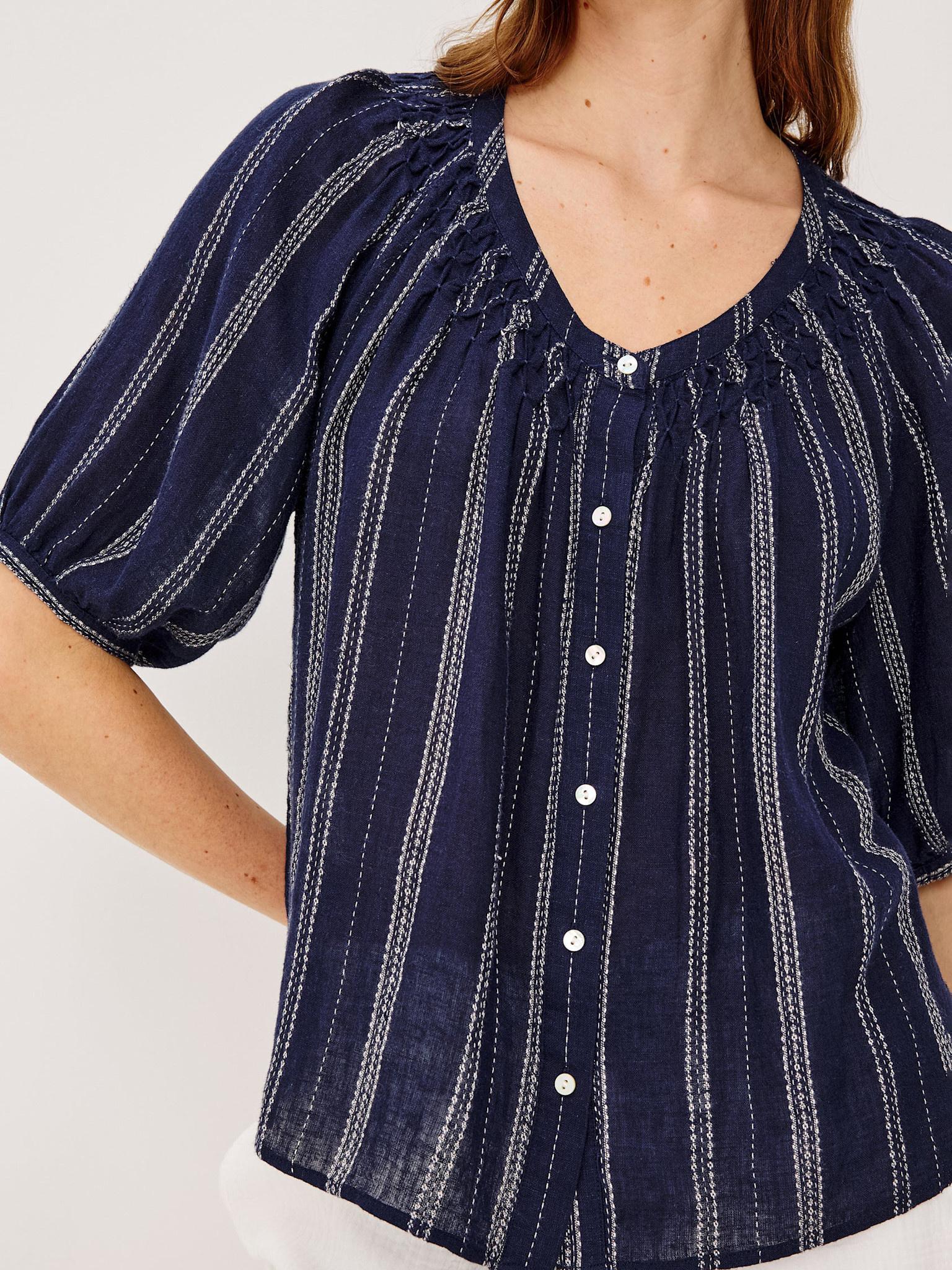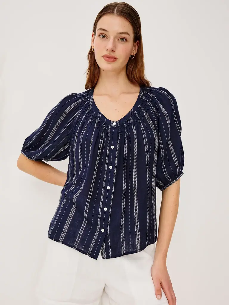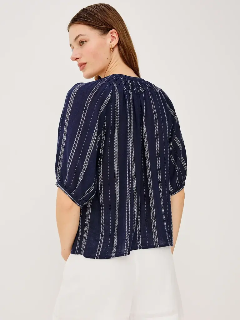 Lightweight navy blue blouse with vertical stripes by Rails.