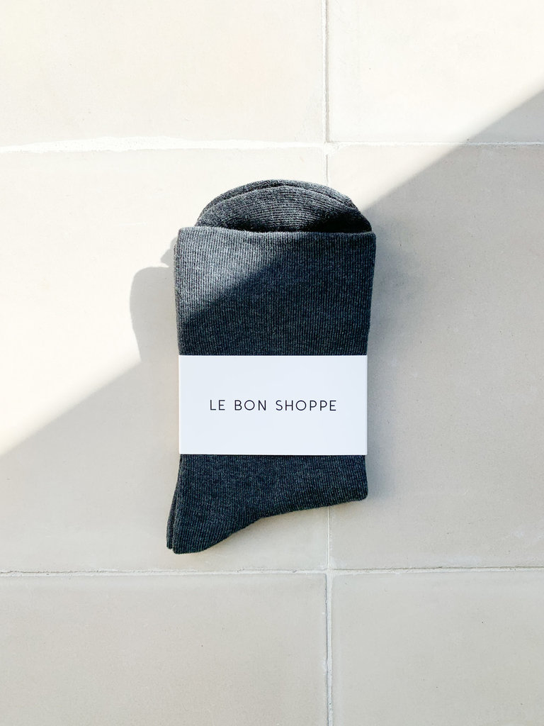 Comfortable heather black socks that are the perfect length to be worn with sneakers.