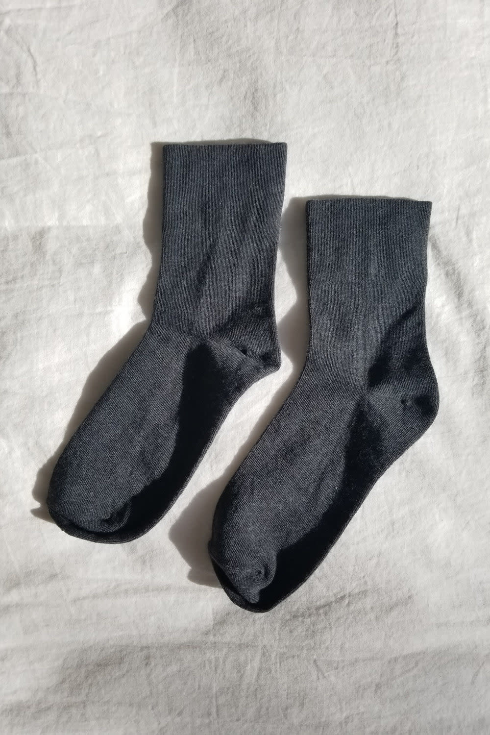 Heather black cotton-blend ankle socks by Le Bon Shoppe.