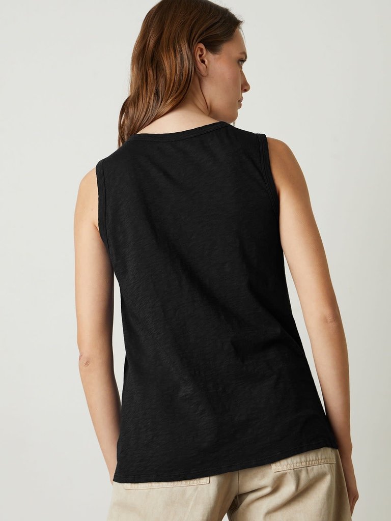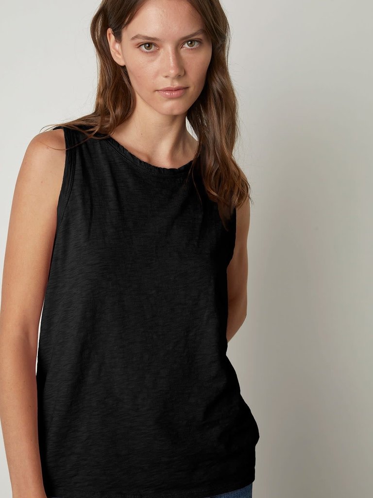 This tank top is a beautiful classic. Made of cotton, it has a flecked heather texture and is as soft as a cloud. We love it for its comfort, versatility and most of all, its femininity!