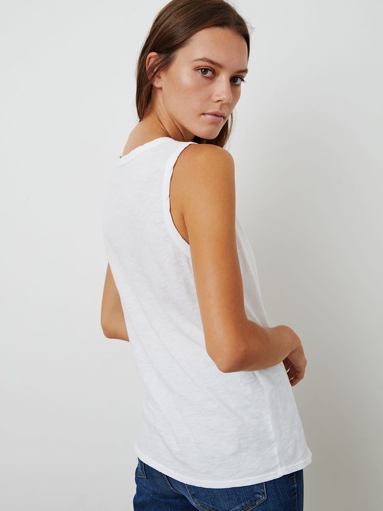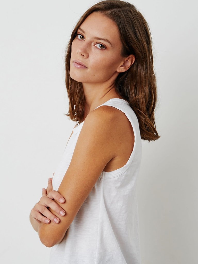 This tank top is a beautiful classic. Made of cotton, it has a flecked heather texture and is as soft as a cloud. We love it for its comfort, versatility and most of all, its femininity!