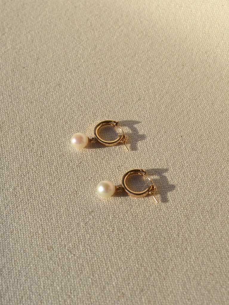 The small Amalfi earrings carry elegance and subtlety with them. They combine bold 14-carat gold rings with a genuine freshwater pearl.