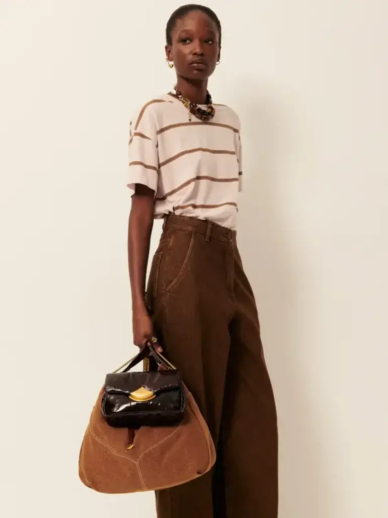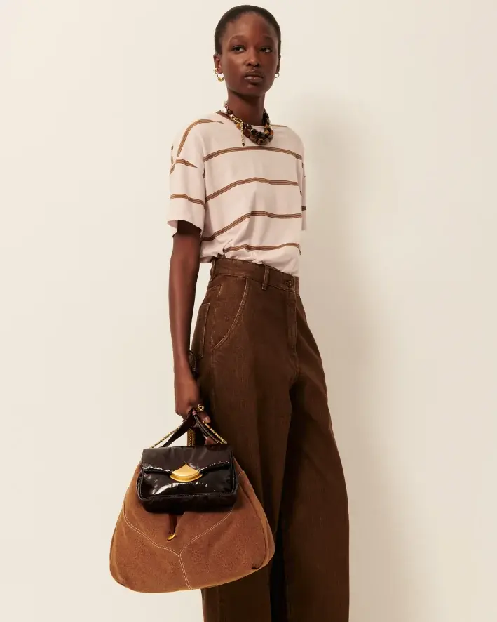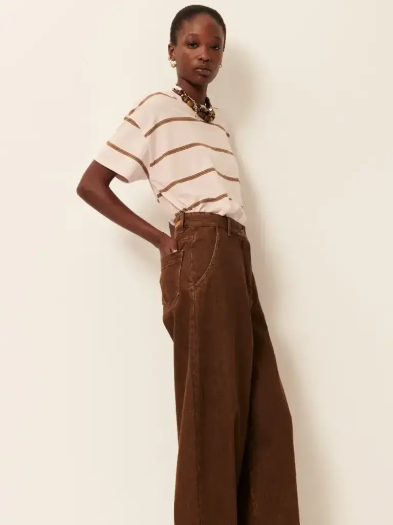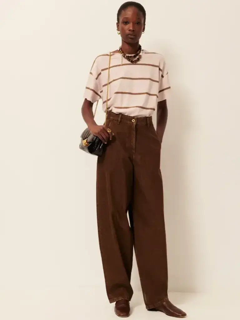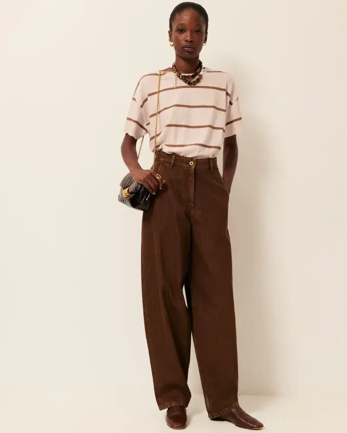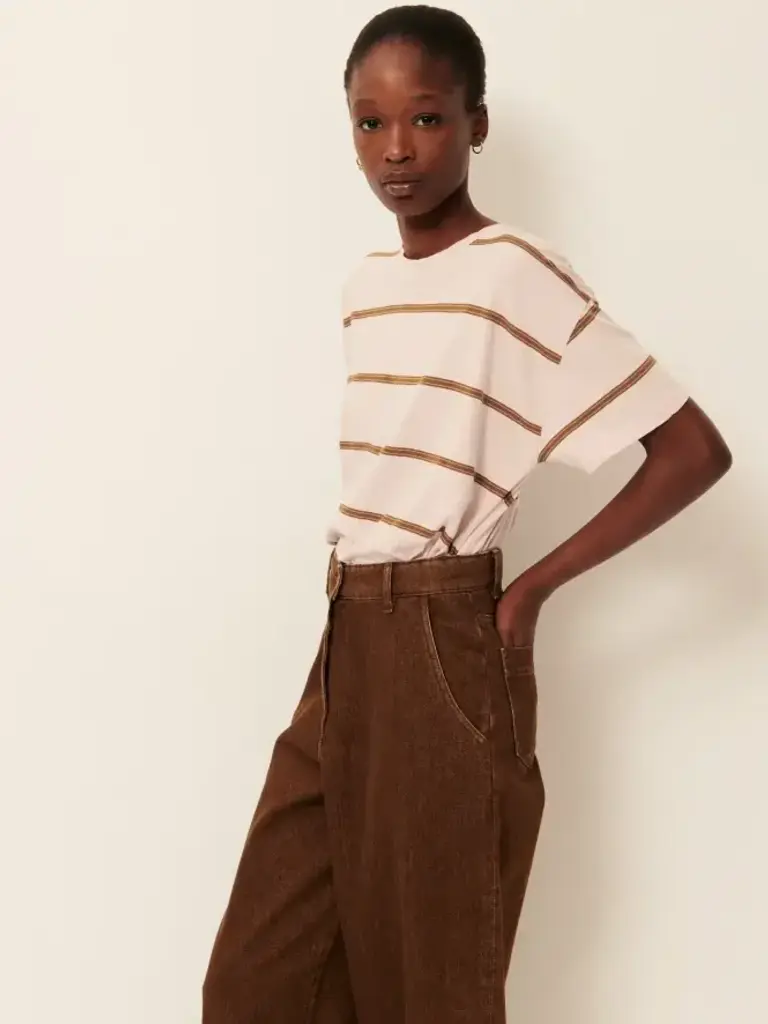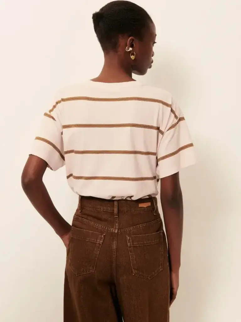 Oversized short-sleeve T-shirt made of striped cotton-linen jersey, made in Portugal.