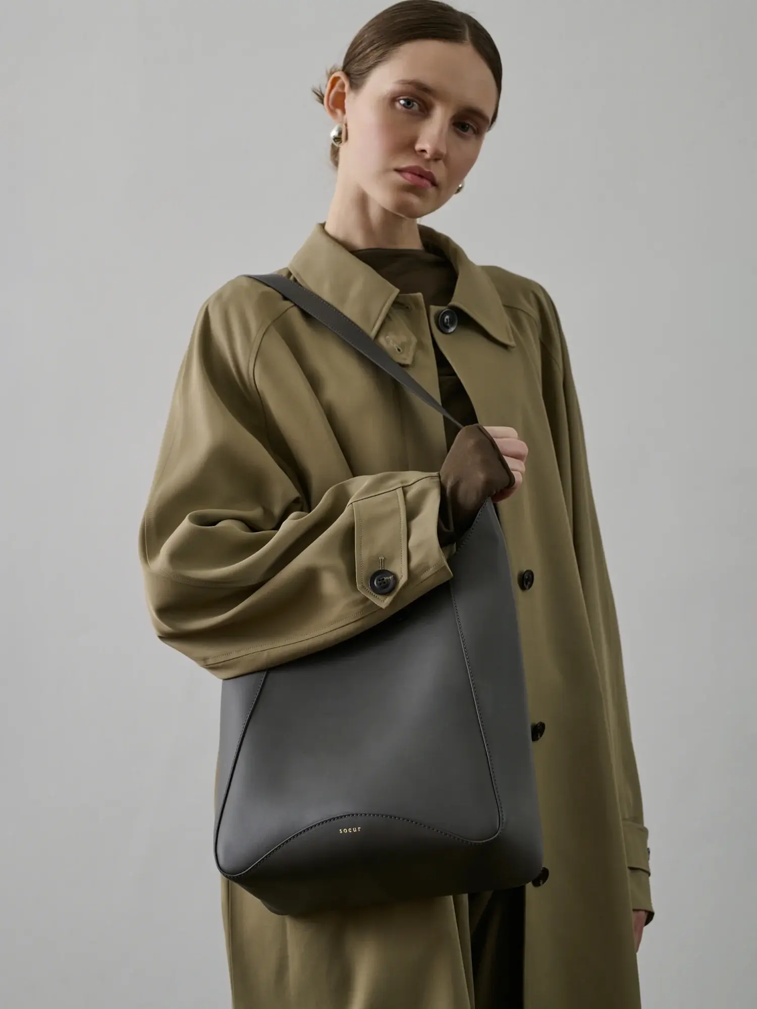 - Smooth graphite leather bag
