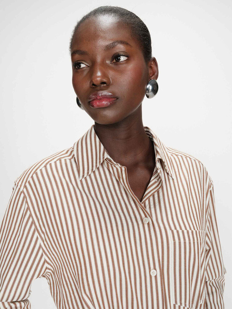 Vertical striped shirt dress by Grace & Mila.