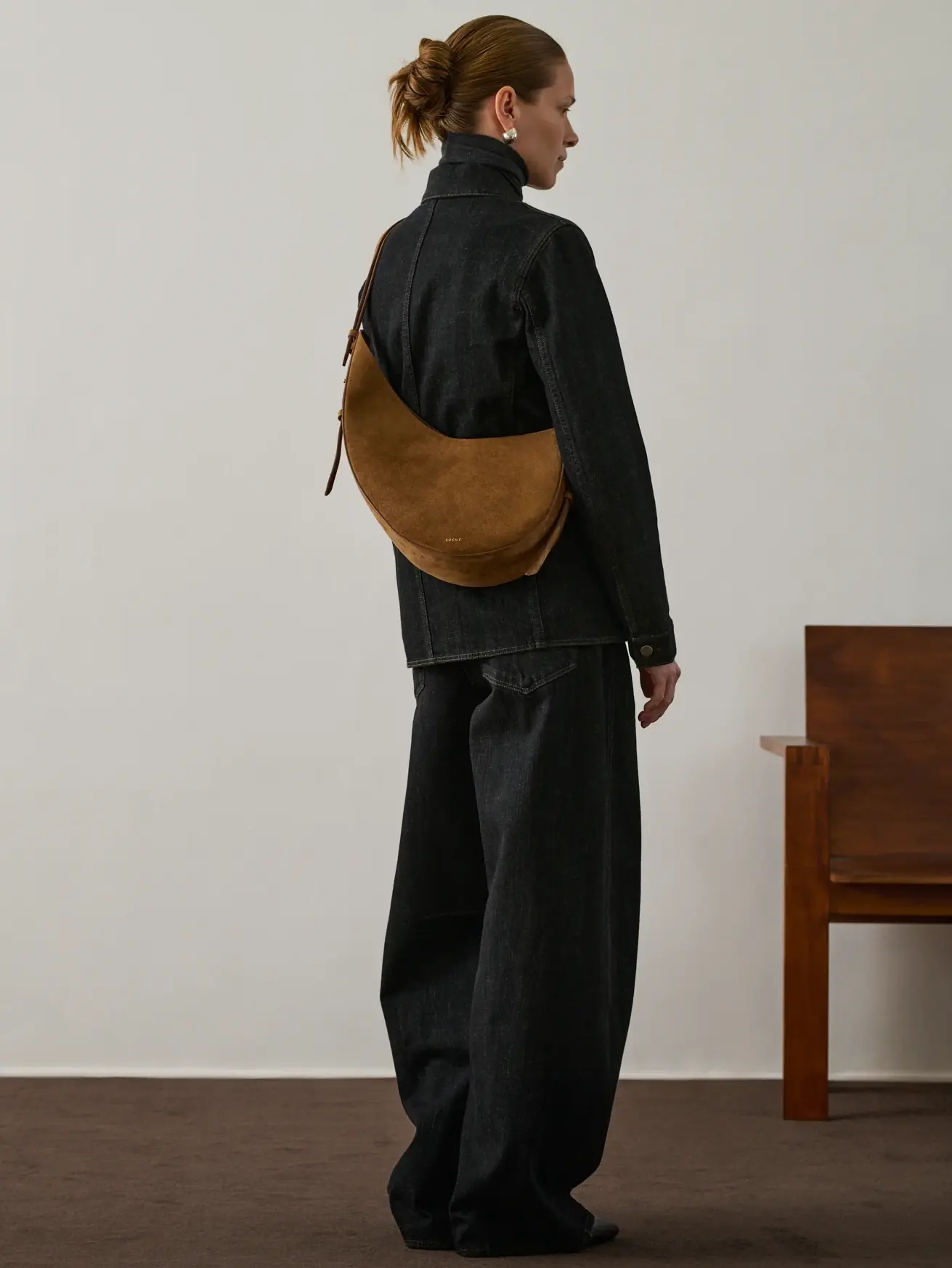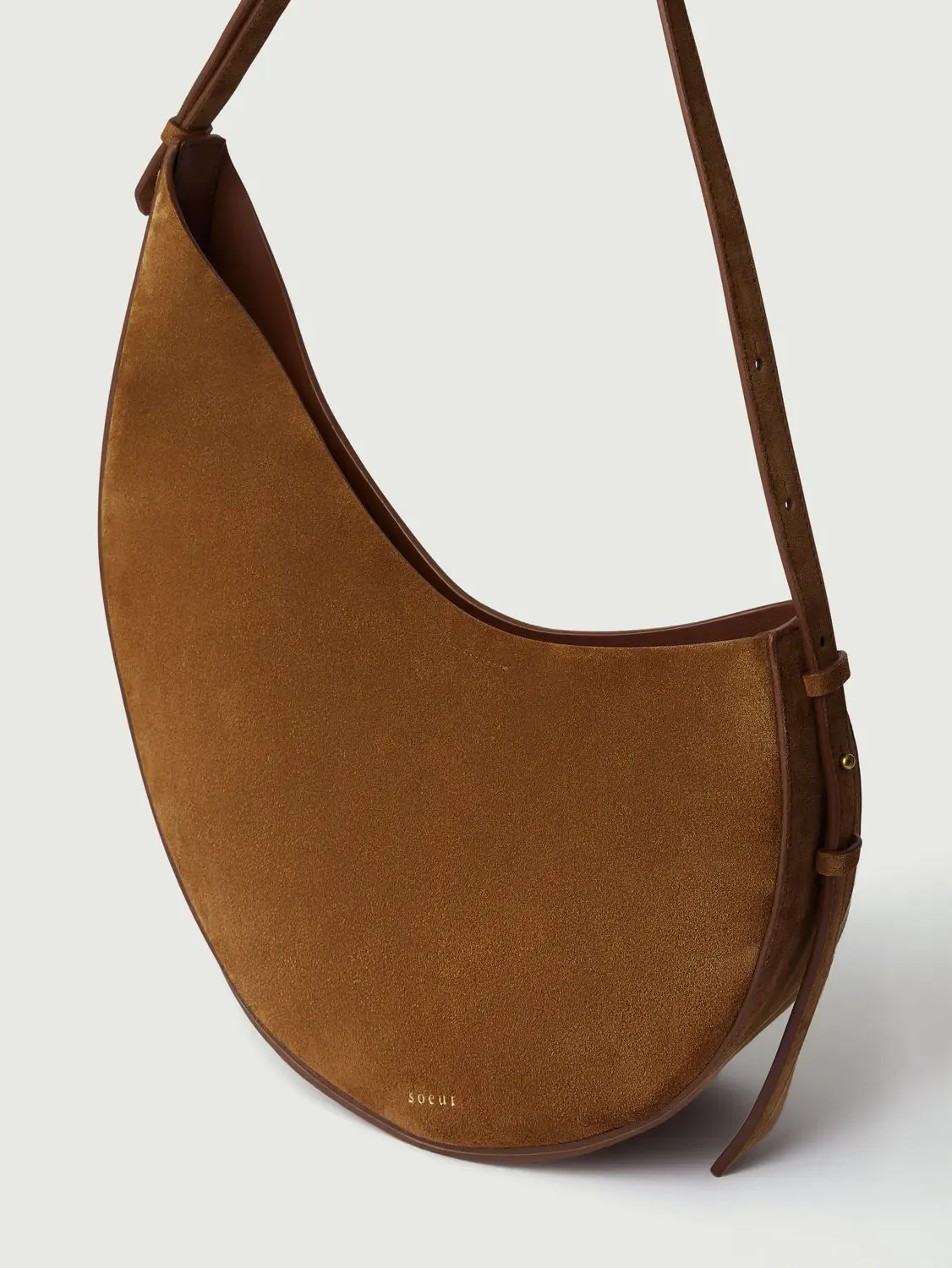 - Removable lambskin pouch inside the bag, secured with a snap button