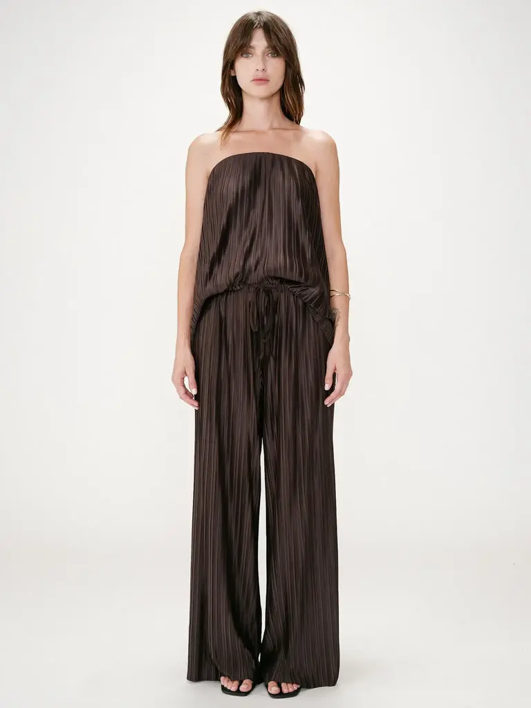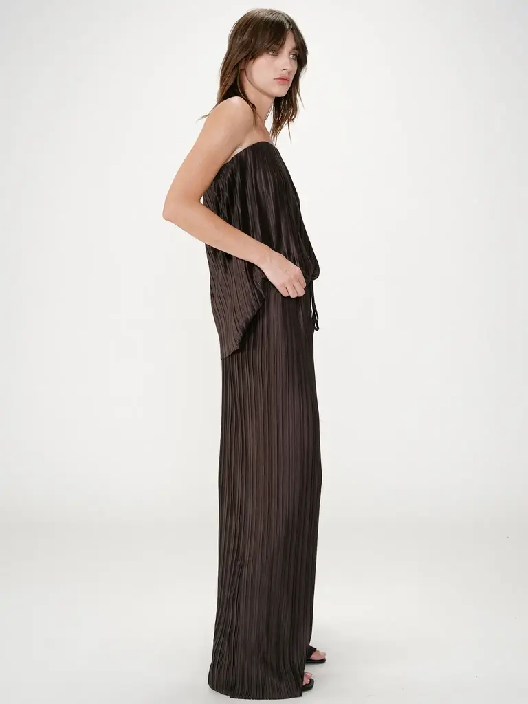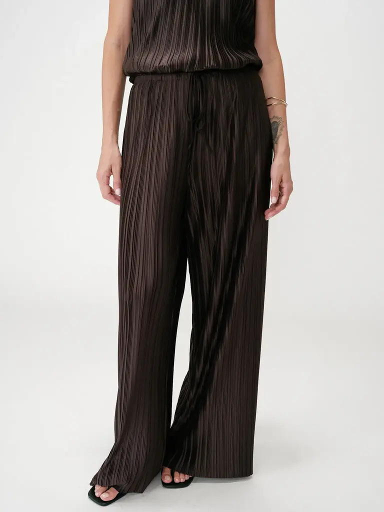 Brown, pleated, and soft pants by Grace & Mila.