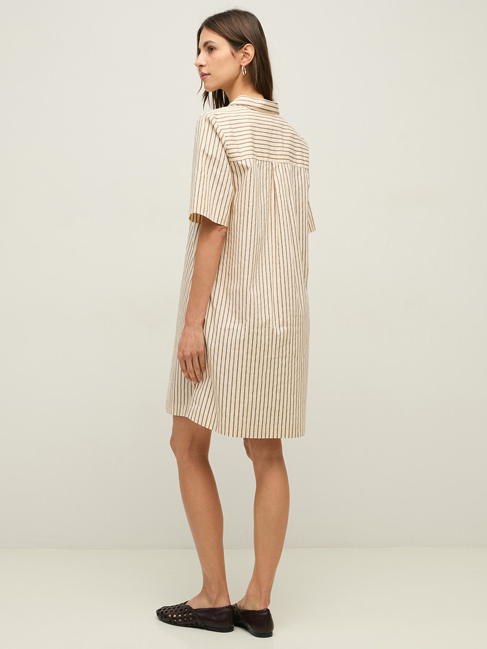 Vertical striped shirt dress by Yerse.