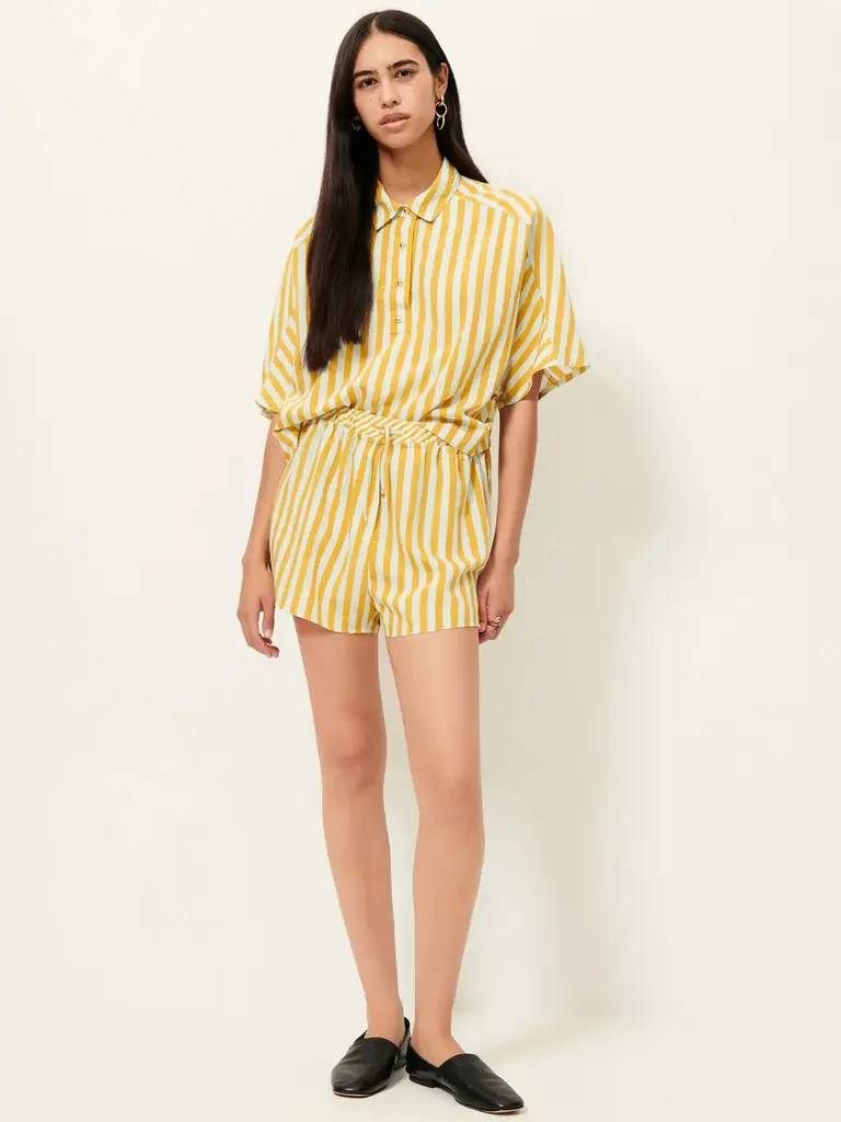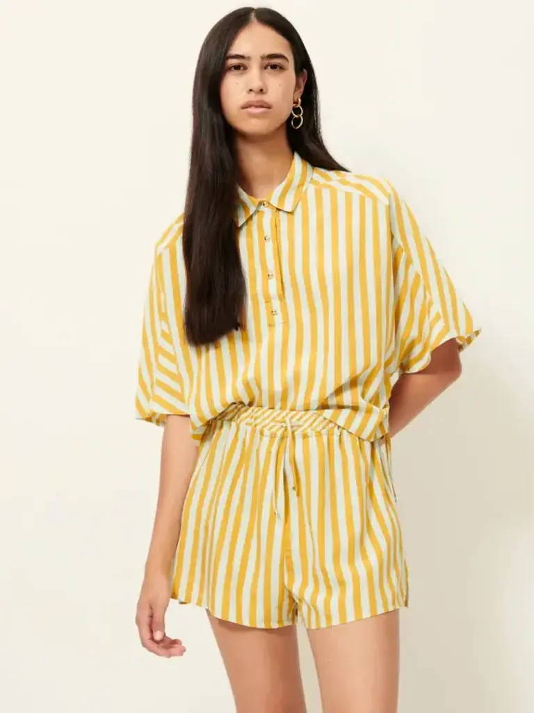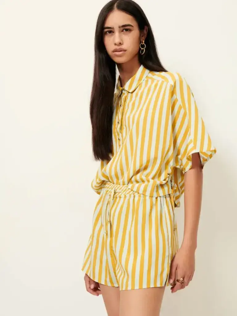 Short élastiqué esprit caleçon en popeline de viscose fluide à larges rayures bicolores.