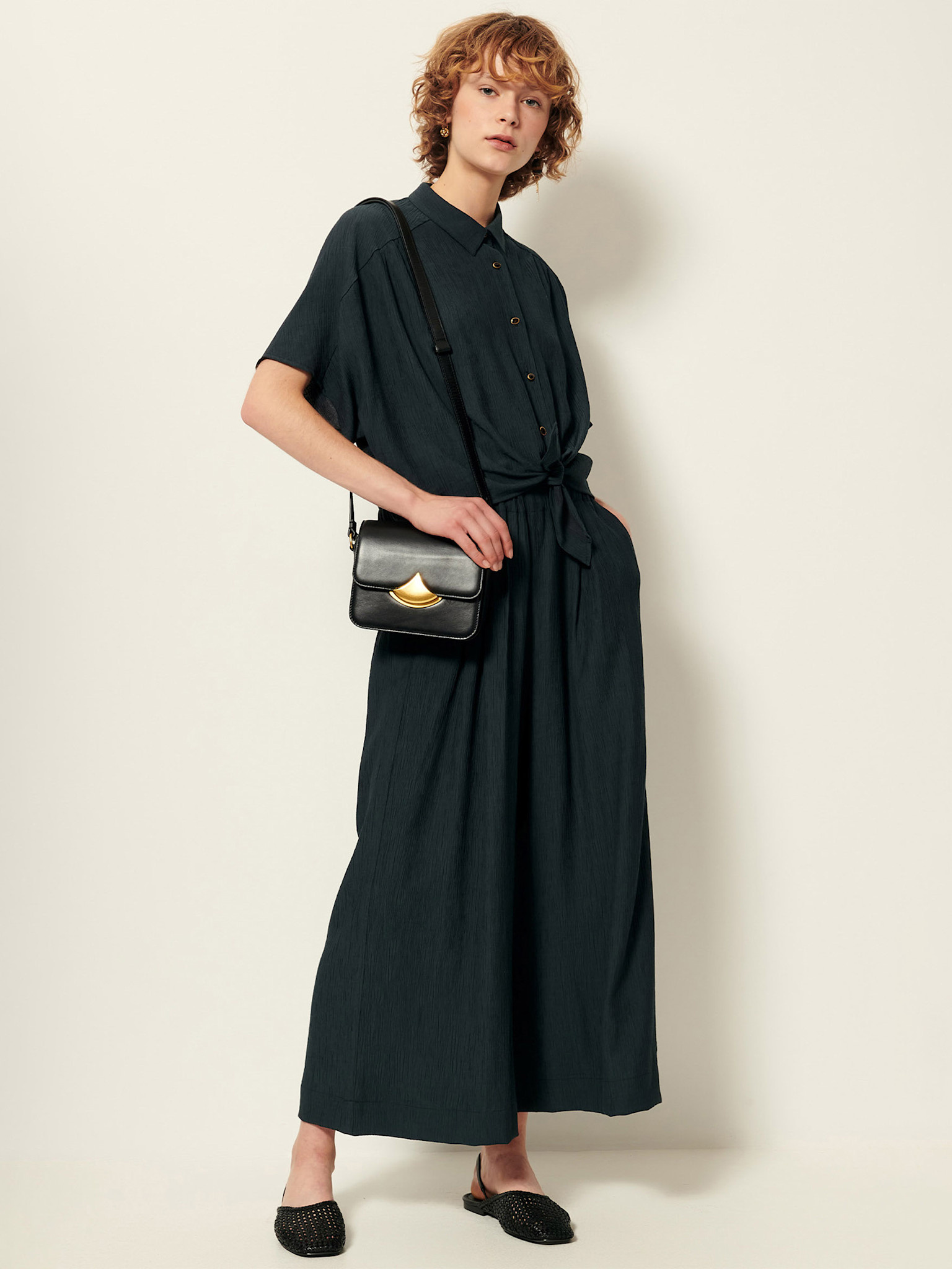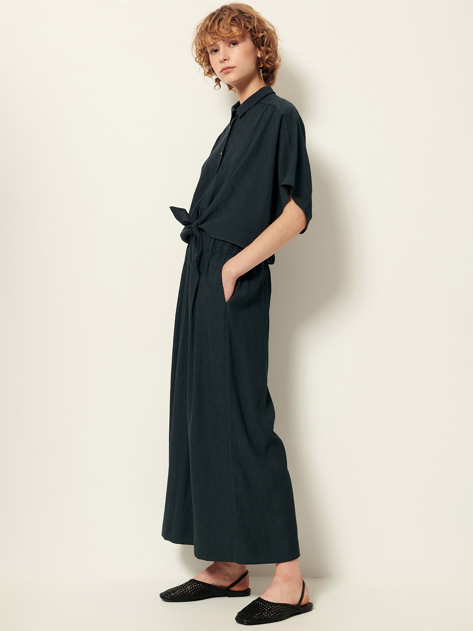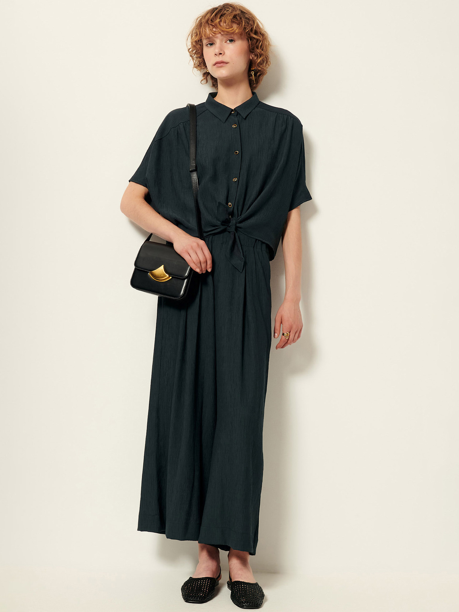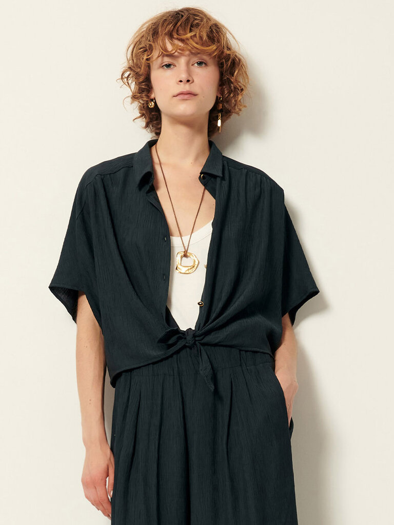 Chemise à manches courtes avec taille élastiquée, confectionnée en crêpe de viscose à effet seersucker doux.