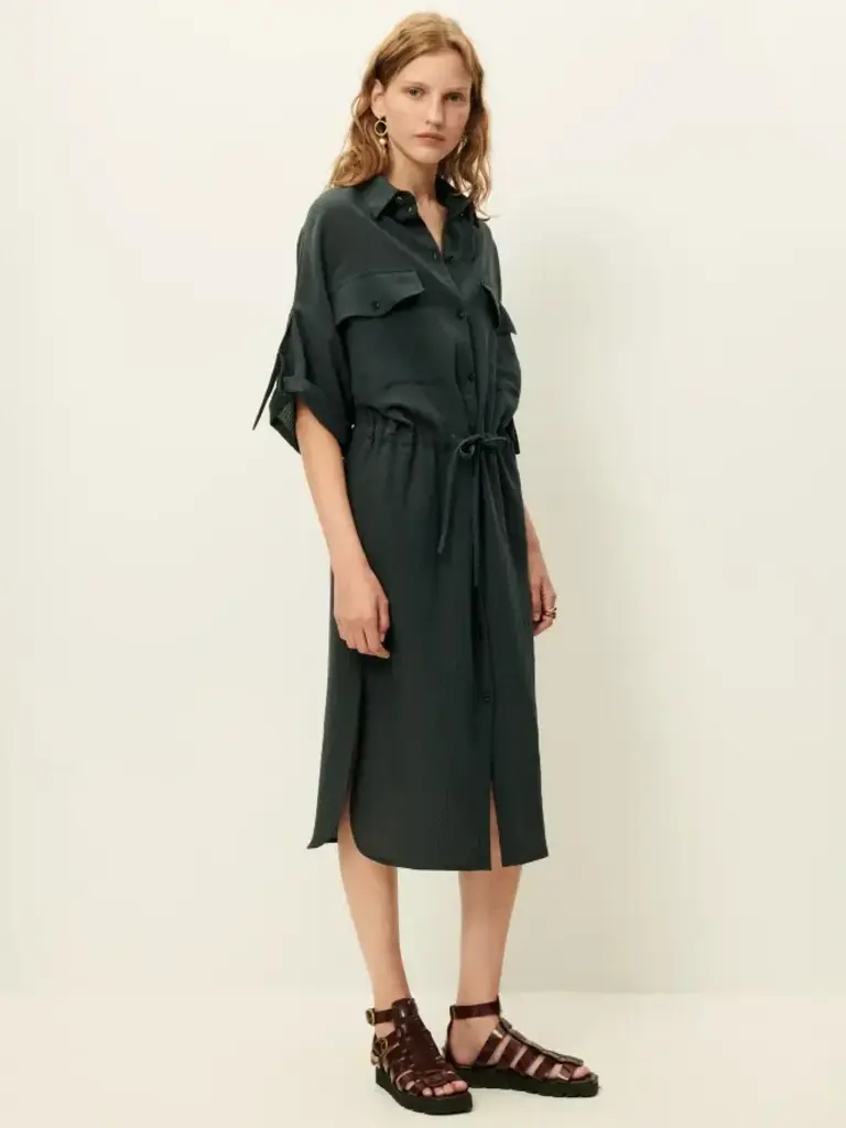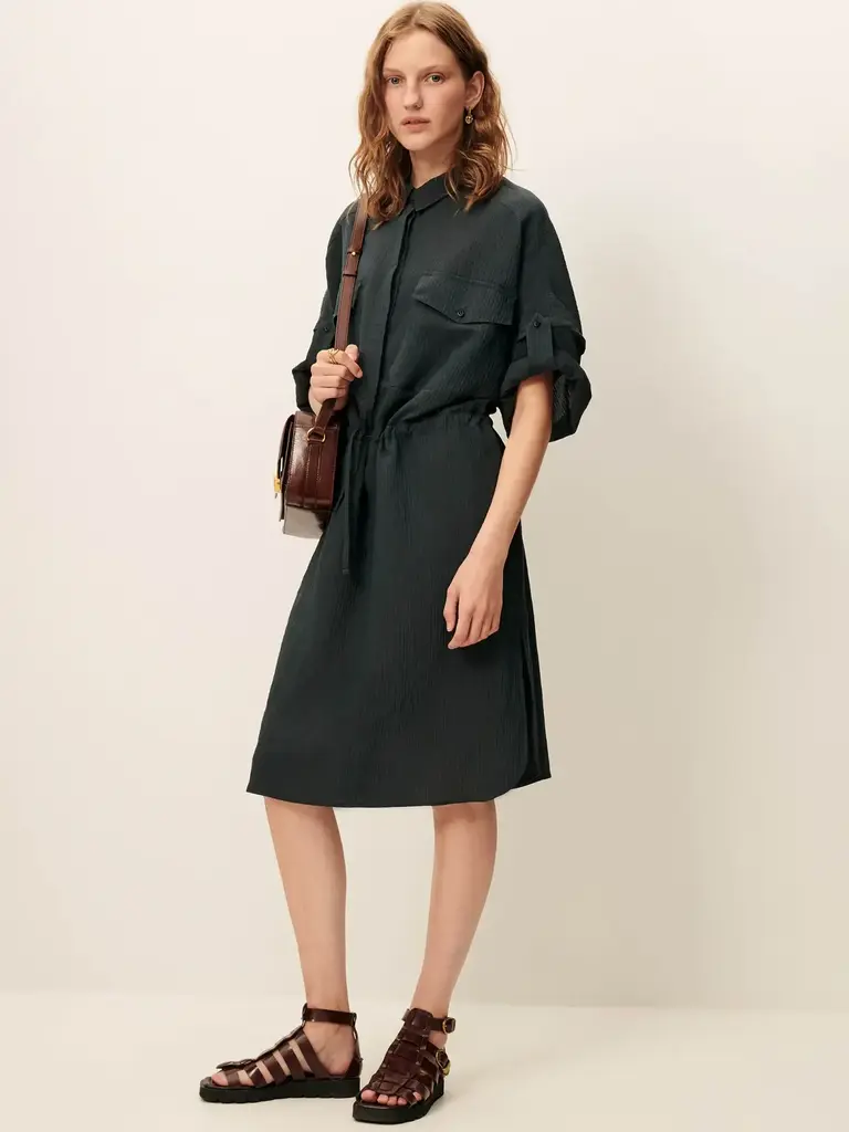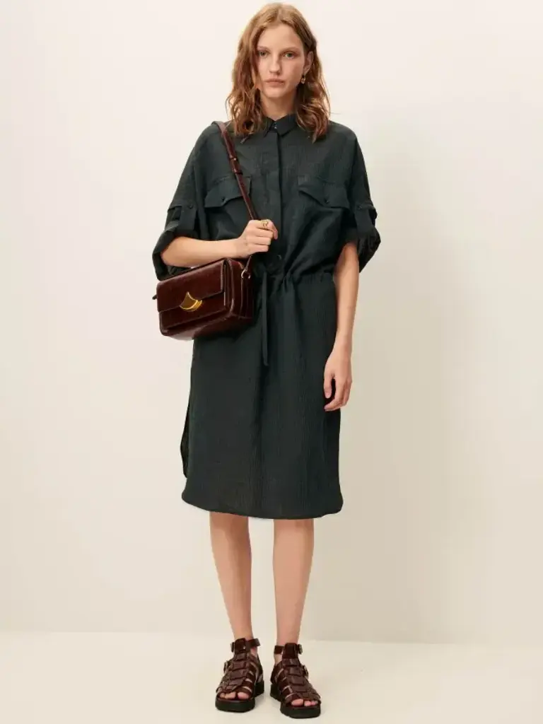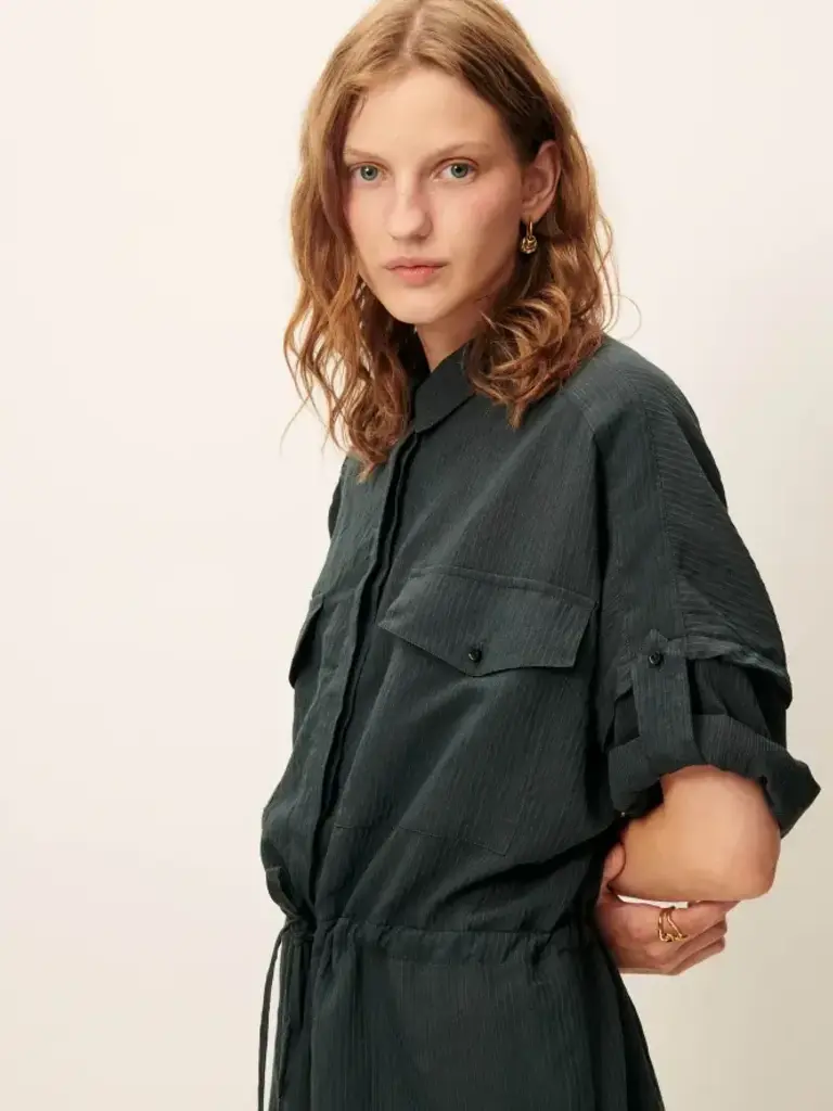 - Taille élastiquée et liens dans la matière à nouer a la taille.