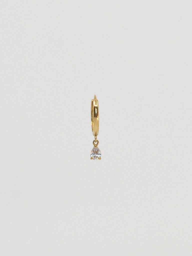 La boucle Athena est une boucle d'oreille unique en or massif 10K sertie de zircons espagnols, conçue pour incarner l'essence des paradis méditerranéens de la mer.