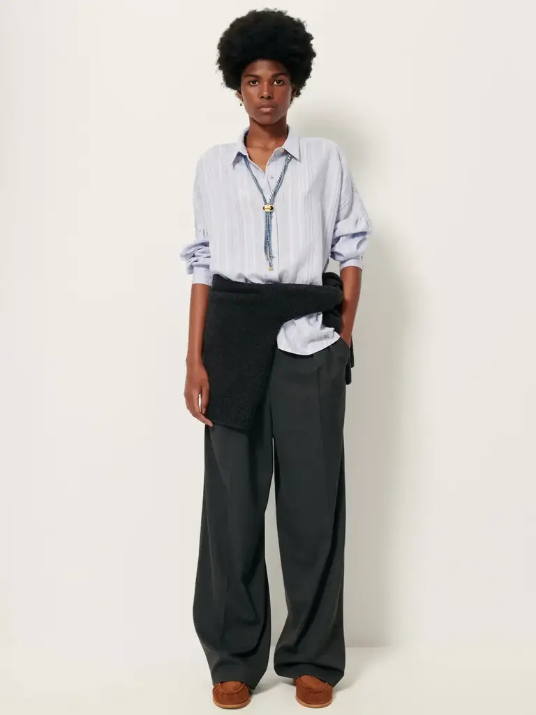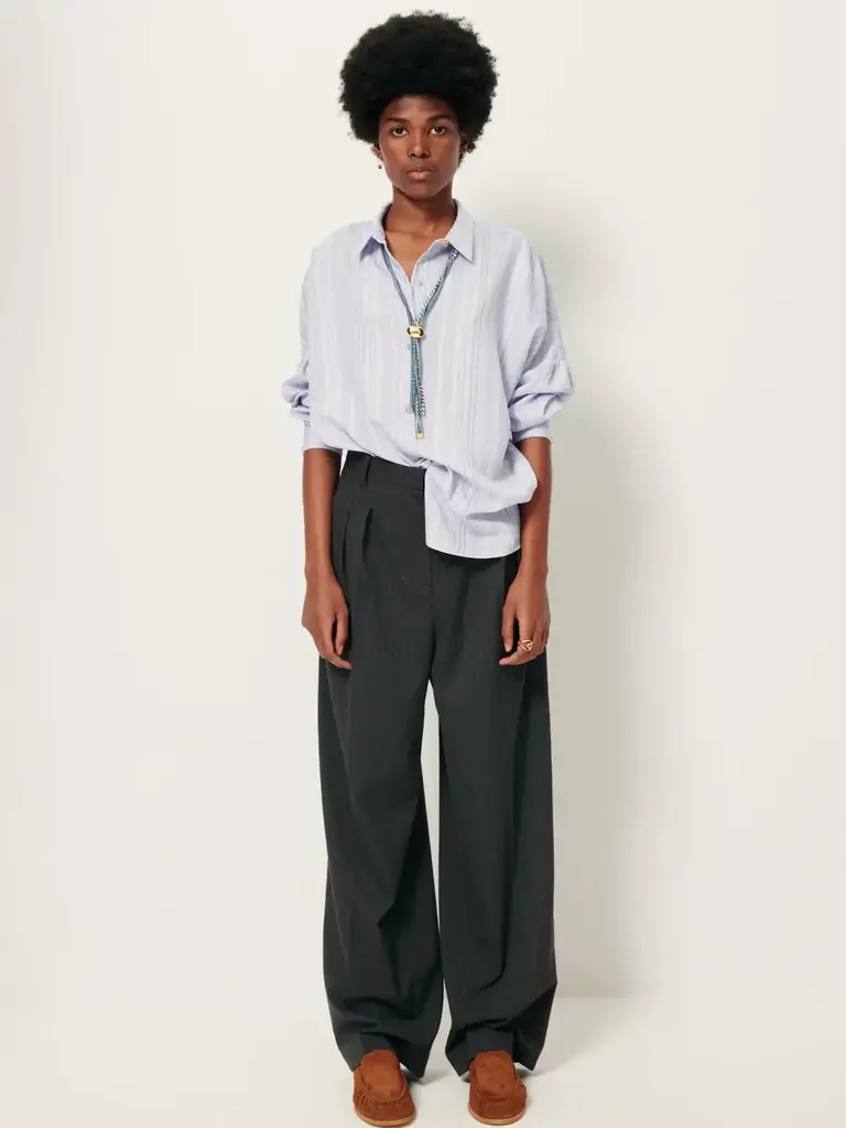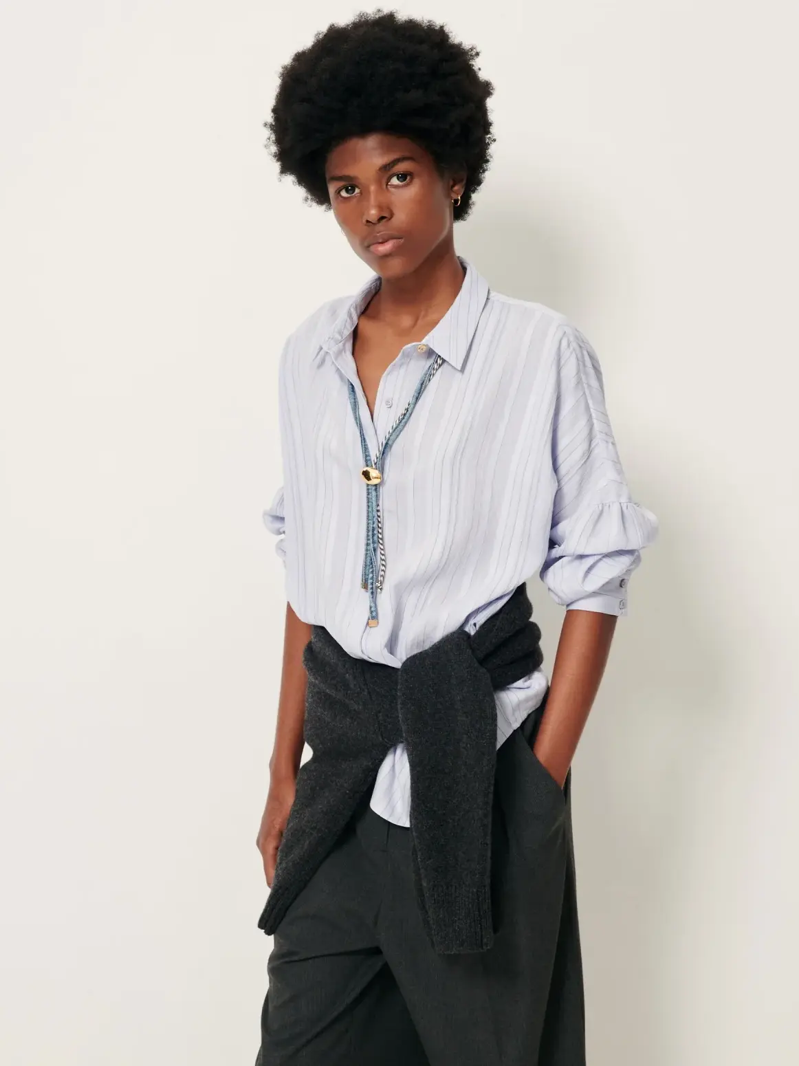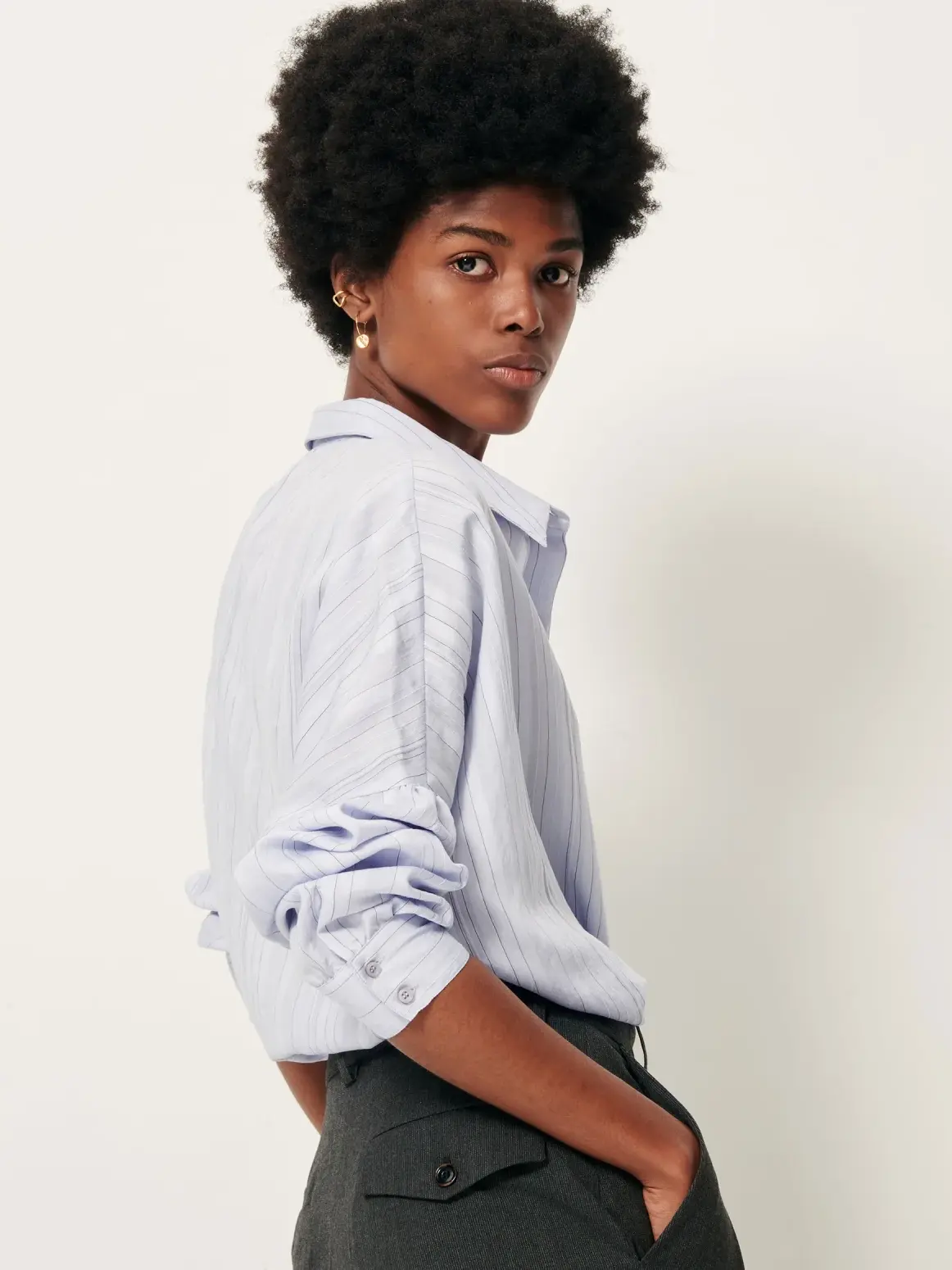 La chemise Botan de la marque Sessùn est un modèle à coupe ample, possédant un col classique, de longues manches ainsi qu'une fermeture et des poignets boutonnés. Son motif rayé la verticale donne de la nuance au style du vêtement et s'accommode facilement à votre look.