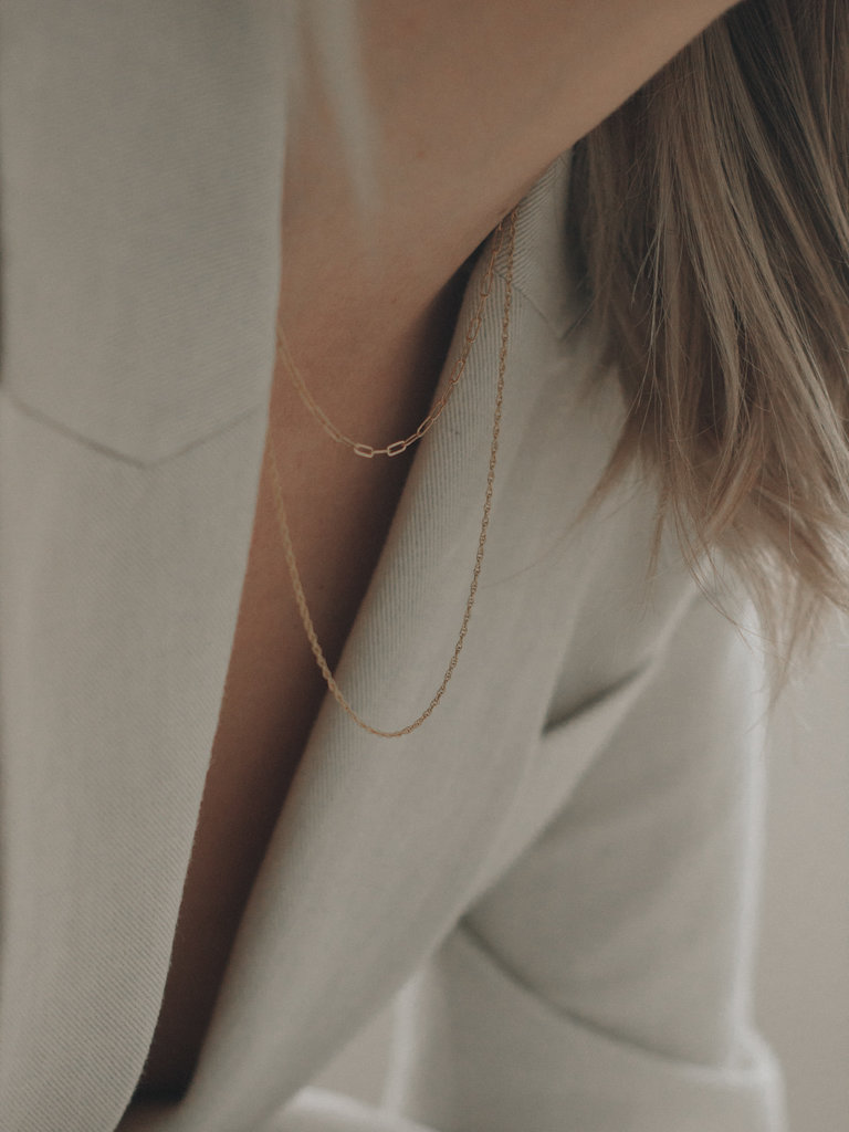 La chaîne Camélia est l'équilibre absolu entre élégance et style au quotidien. Cette délicate chaîne en or 14 carats gold-filled promet d'apporter féminité et facilité à votre quotidien.