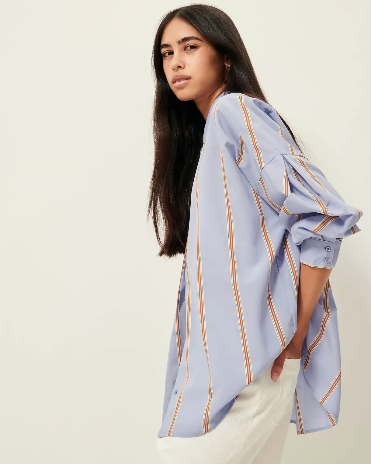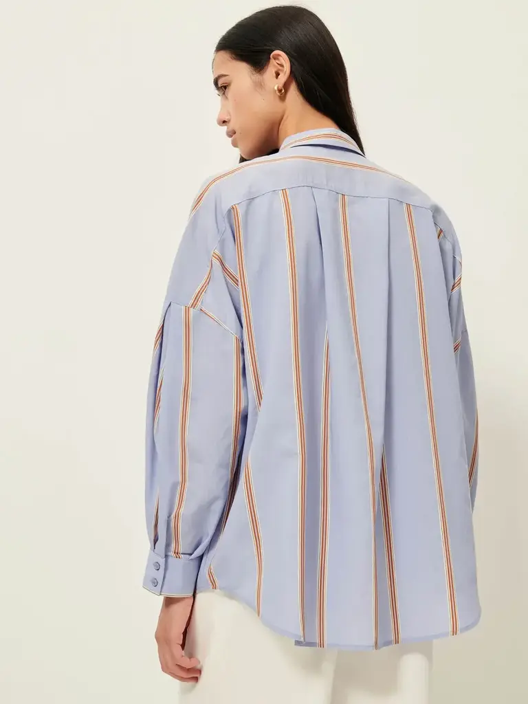 Chemise ample à emmanchures basses à plis, en linon de viscose à rayures contrastées, tissé en Italie, exclusives Sessùn.