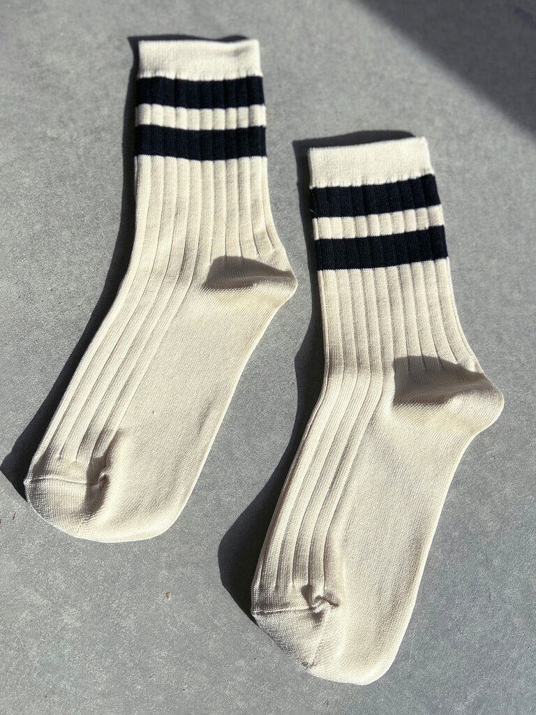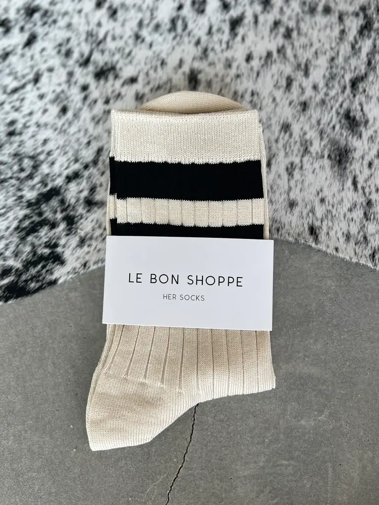 Chaussettes crèmes à rayures noires de la marque Le Bon Shoppe.