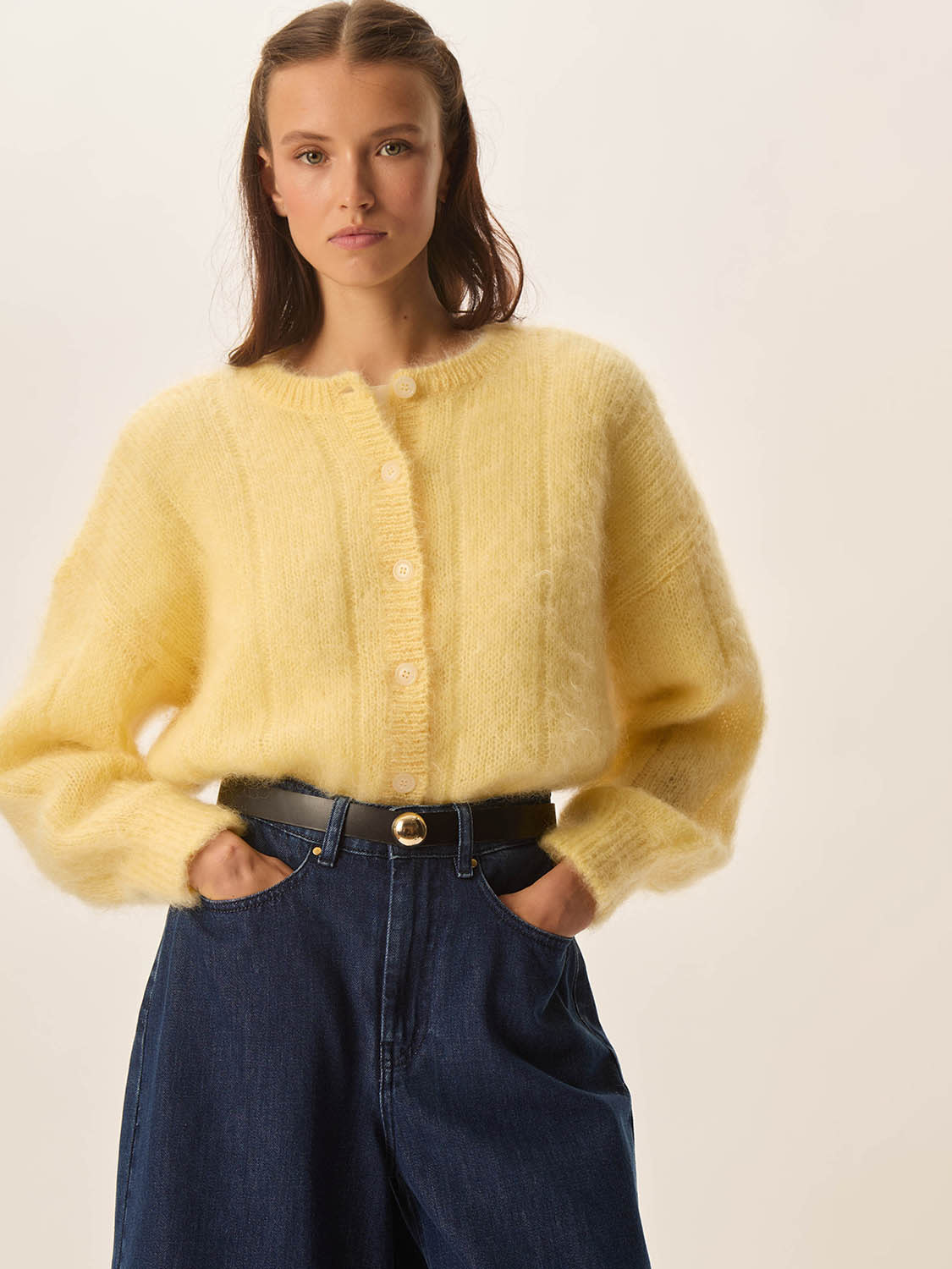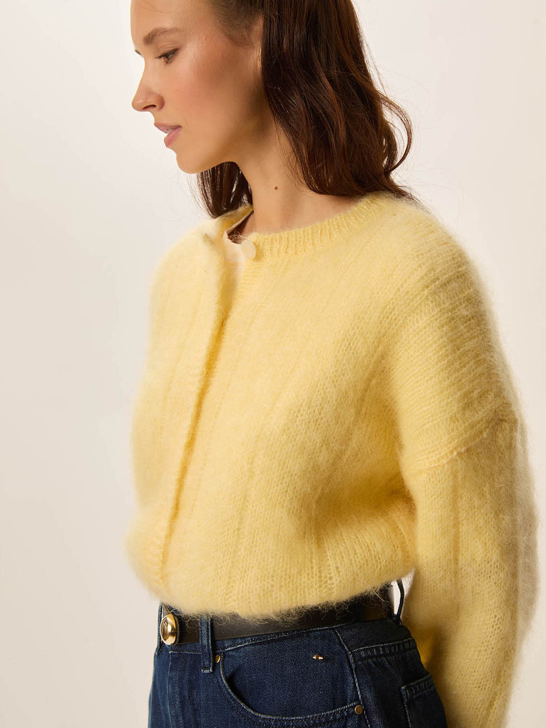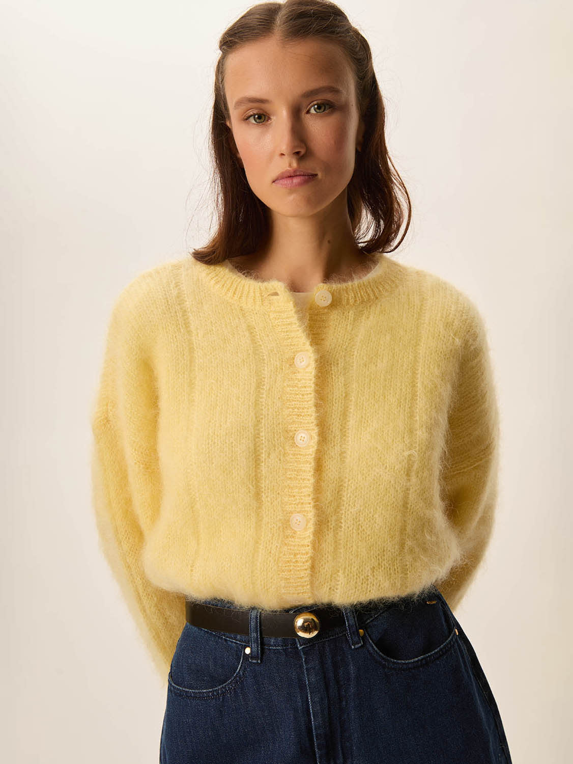 Cardigan jaune paille de la marque Des Petits Hauts.