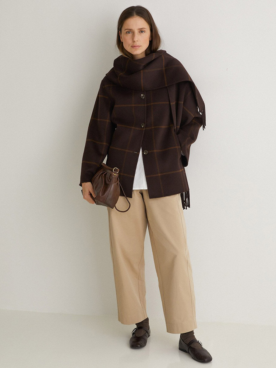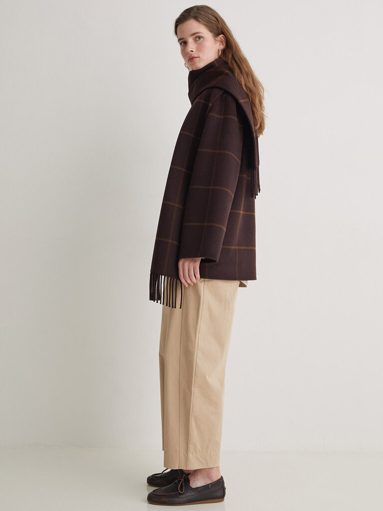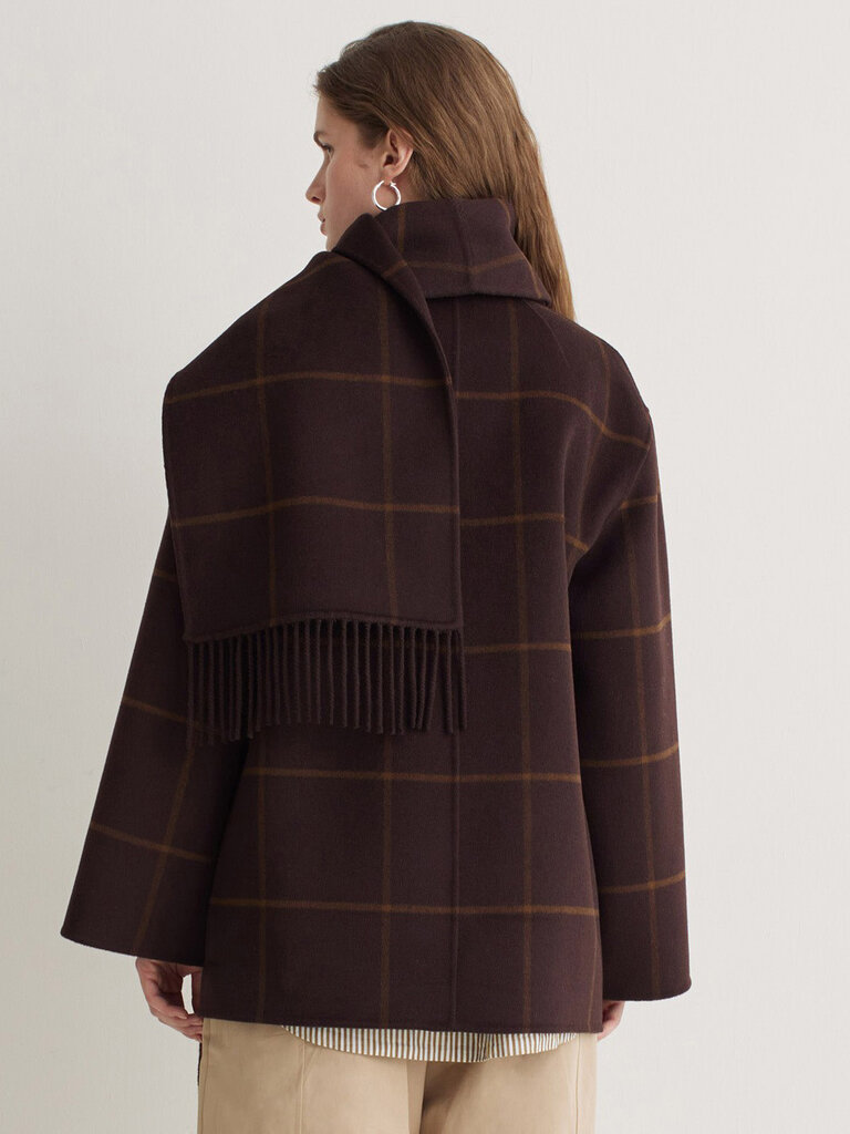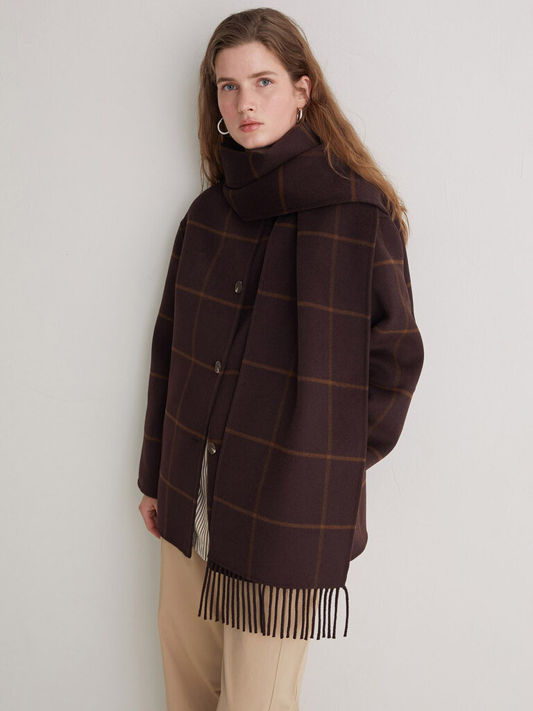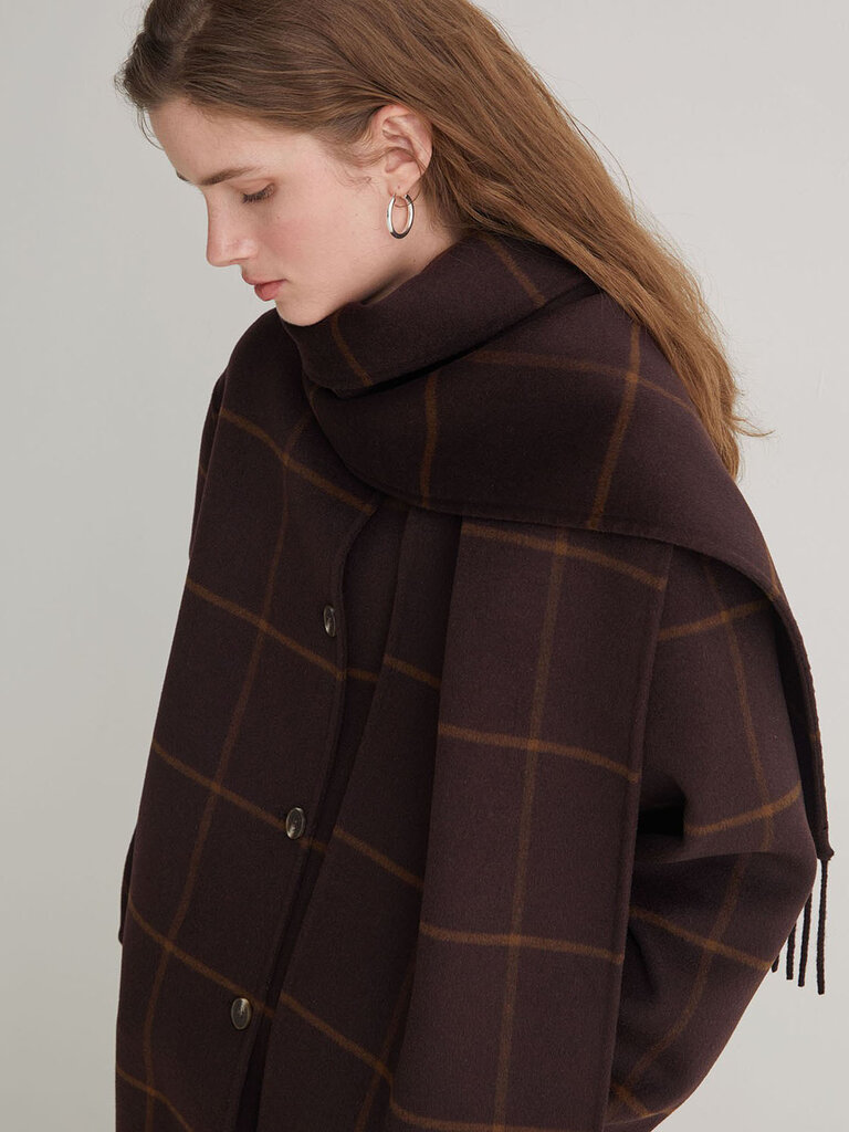 Manteau carrelé avec foulard intégré de la marque Yerse.