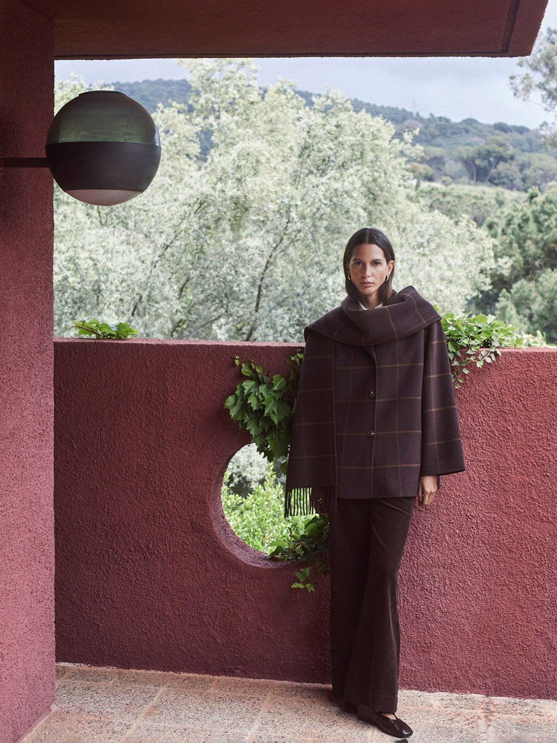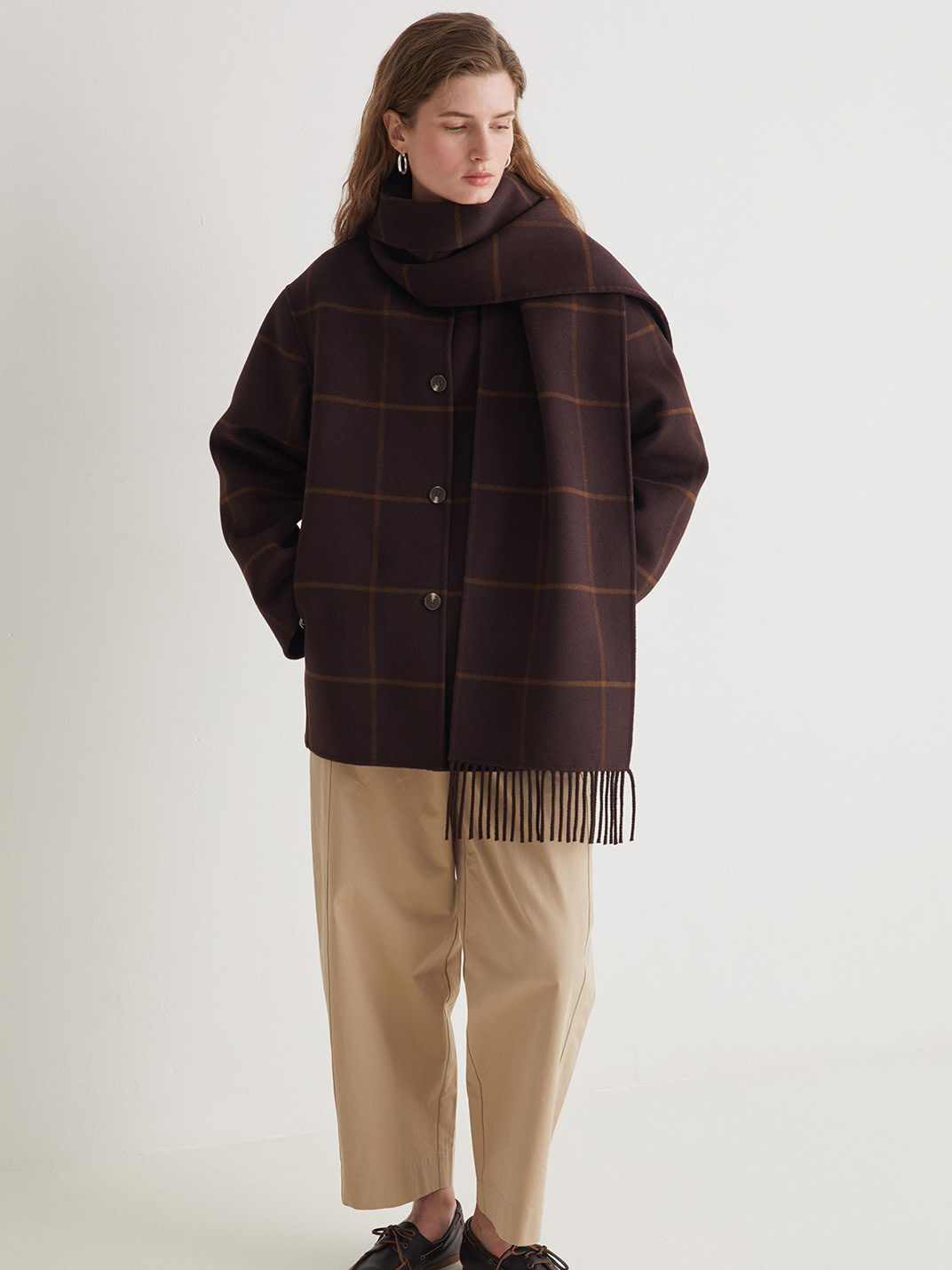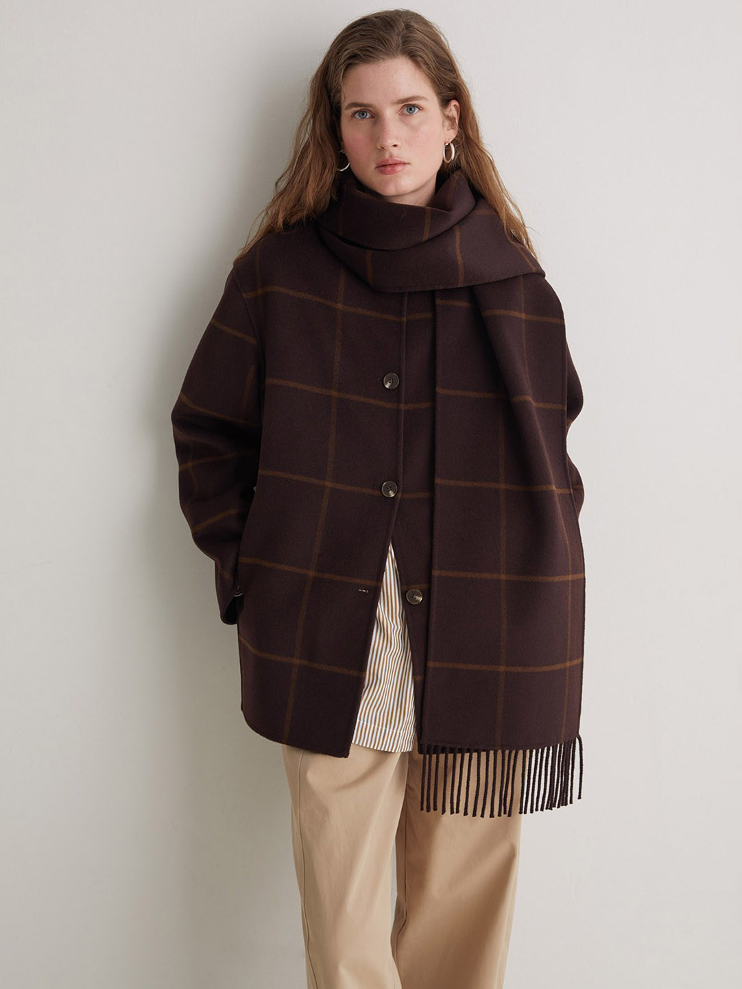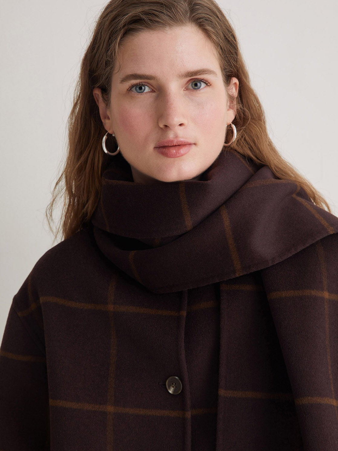 Manteau carrelé avec foulard intégré de la marque Yerse.