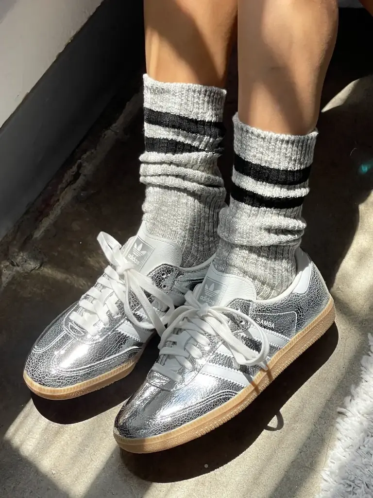 Chaussettes grises à rayures noires de la marque Le Bon Shoppe.